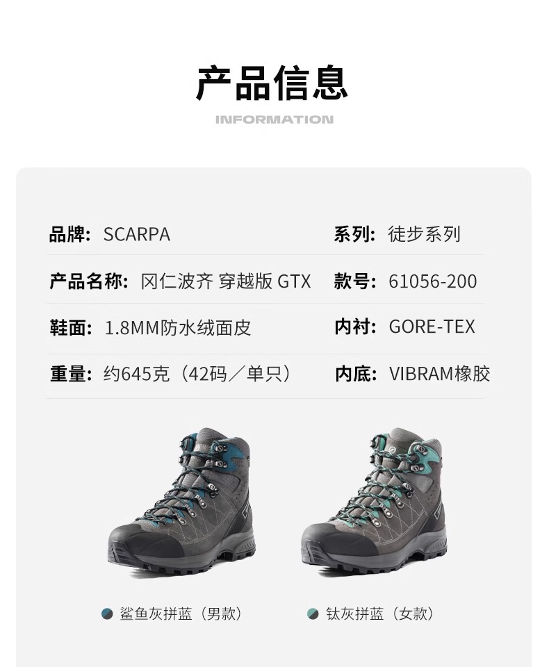 SCARPA斯卡帕冈仁波齐穿越户外登山鞋男防水耐磨防滑重装徒步鞋女