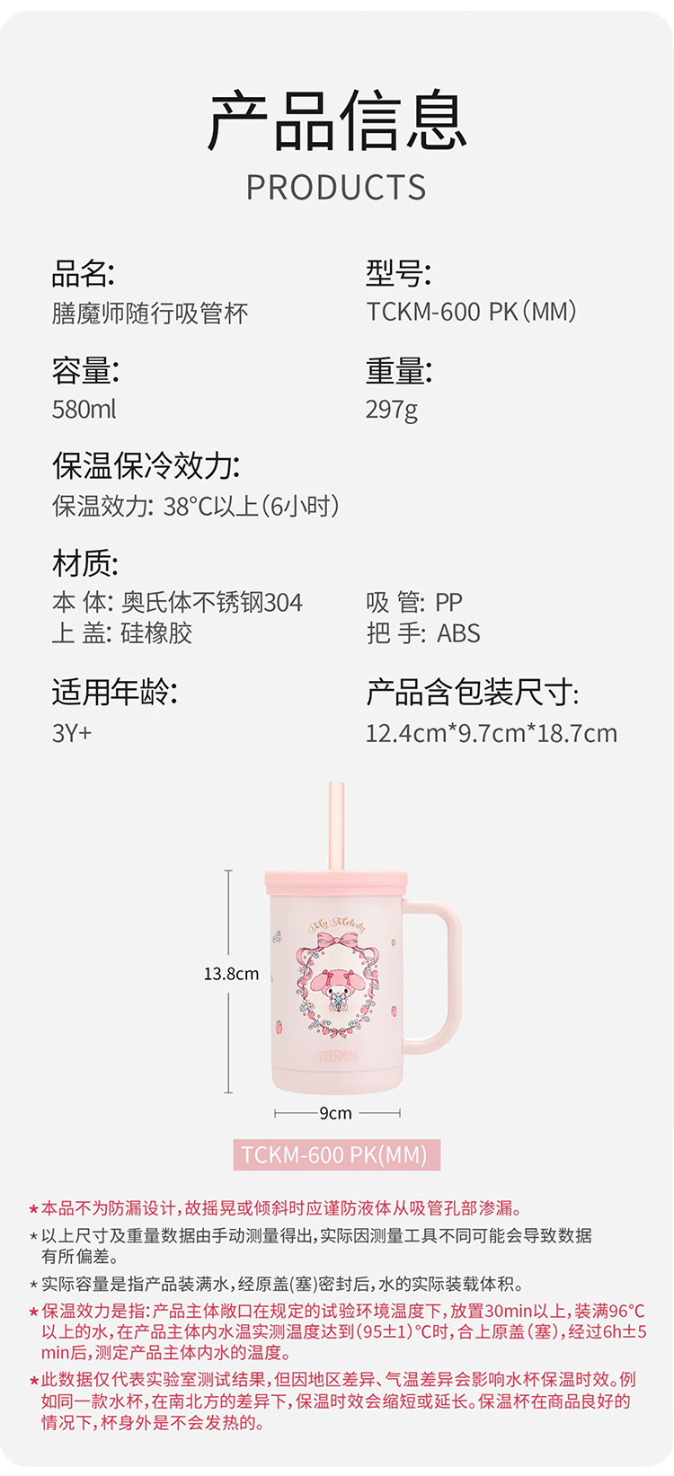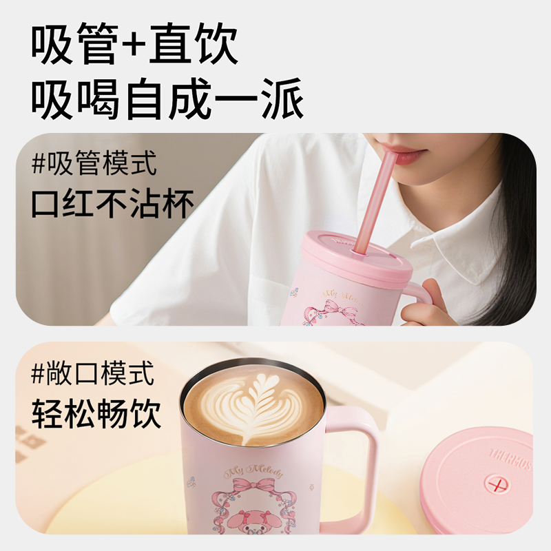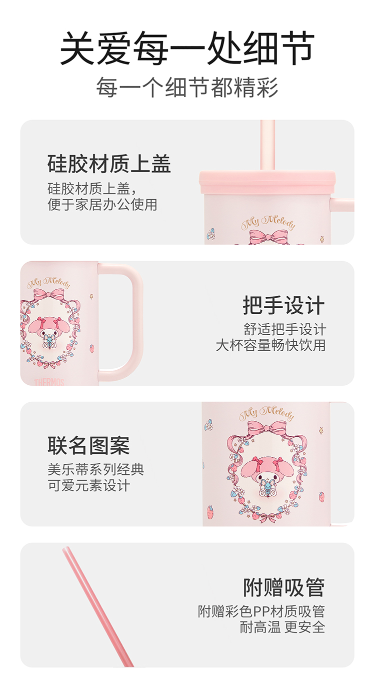 德国Thermos 膳魔师三丽鸥联名不锈钢随行吸管杯 美乐蒂粉色 580mL(3Y+)