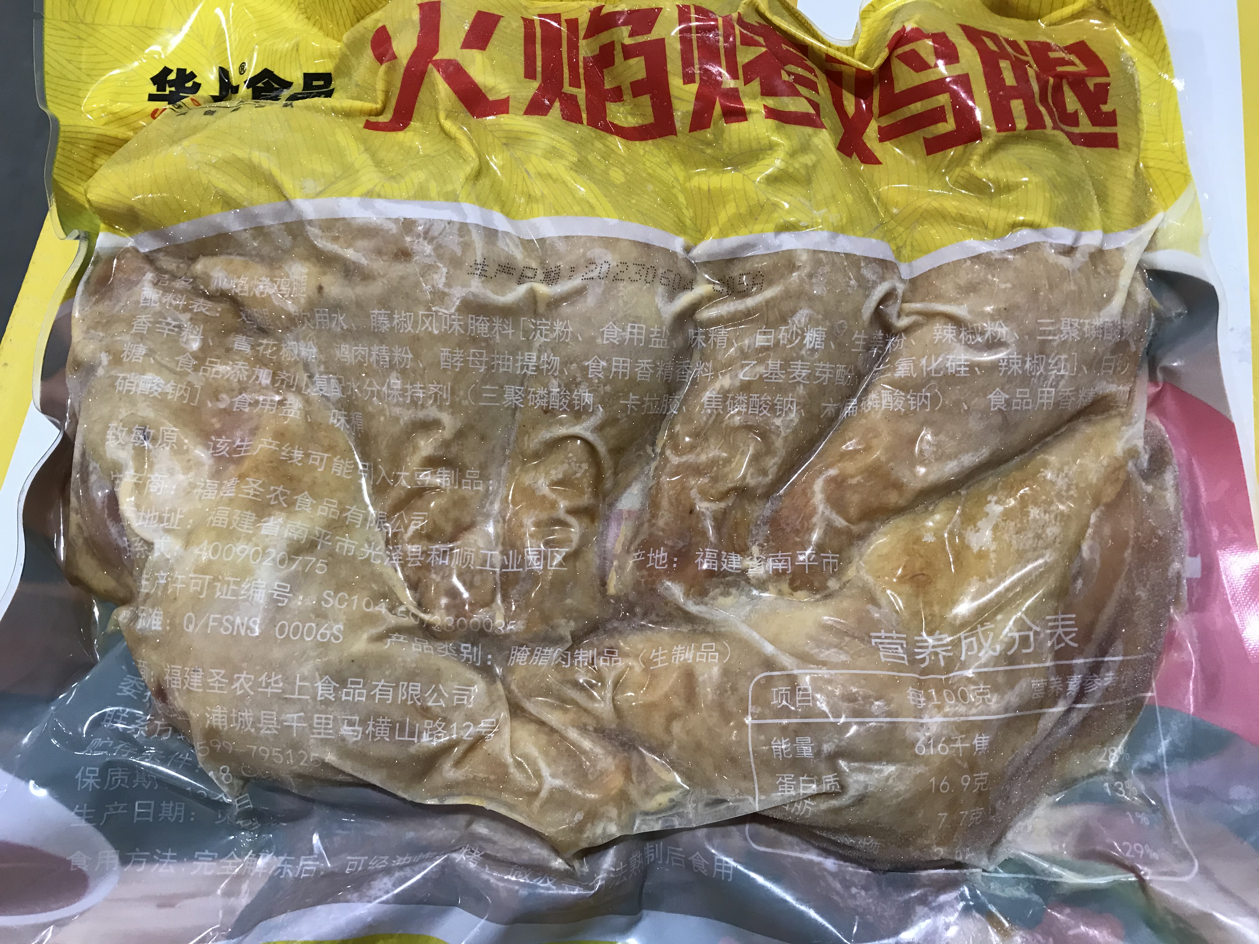圣农华上火焰烤鸡腿(1kg/包 6个)生产日期: 10月