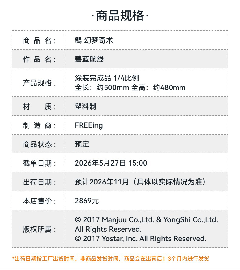 【GSC预售定金】1/4标准比例 鵗 幻梦奇术 碧蓝航线 手办模玩