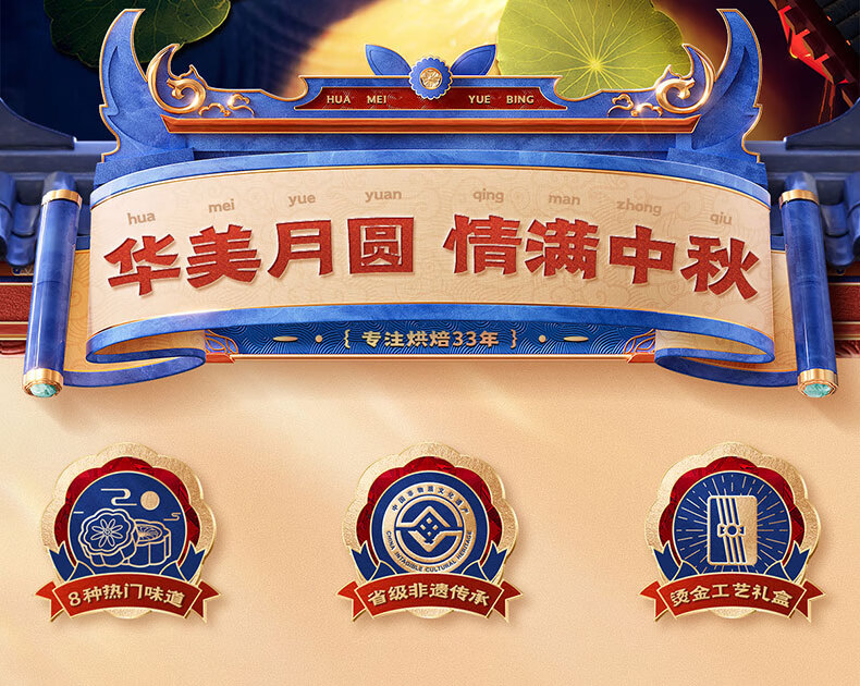 华美团团圆圆月饼礼盒460g广式月饼中秋送礼