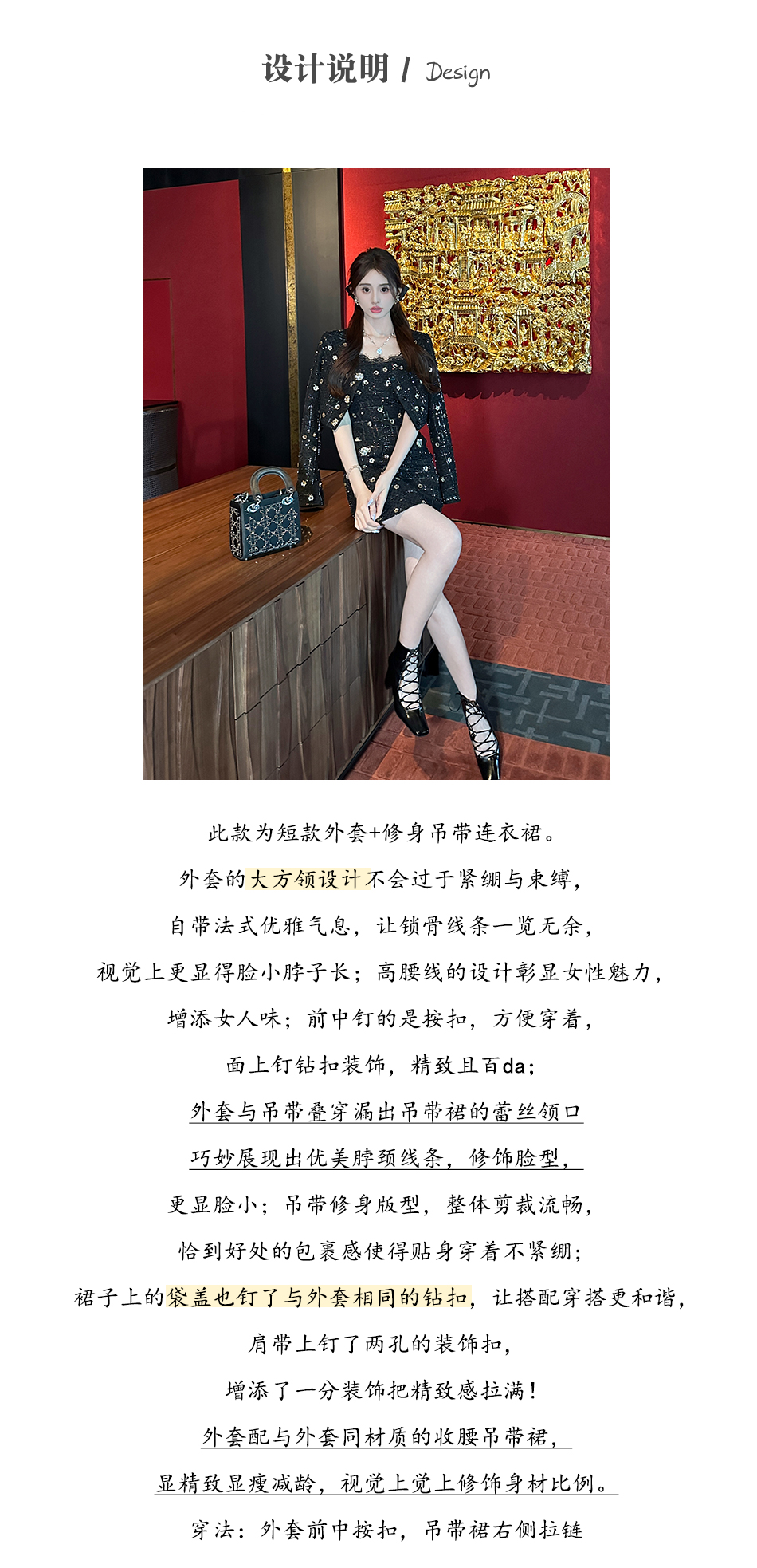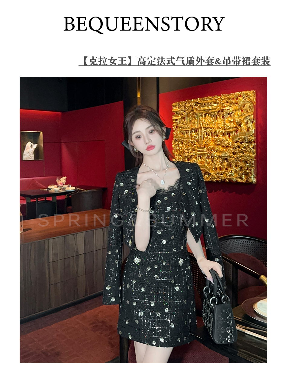 【孤品样衣,不退不换】【克拉女王】高定法式含羊毛气质外套&吊带裙套装