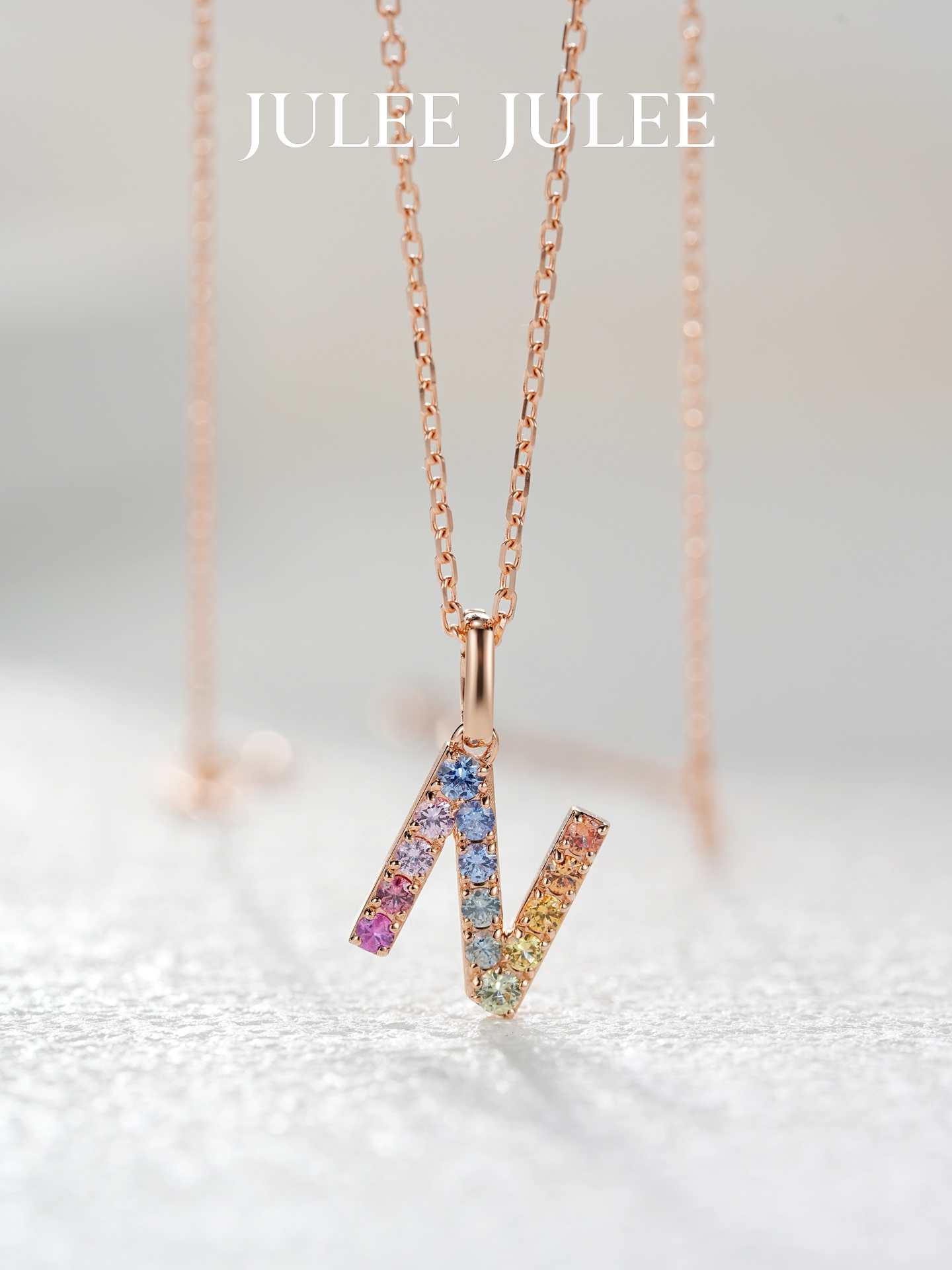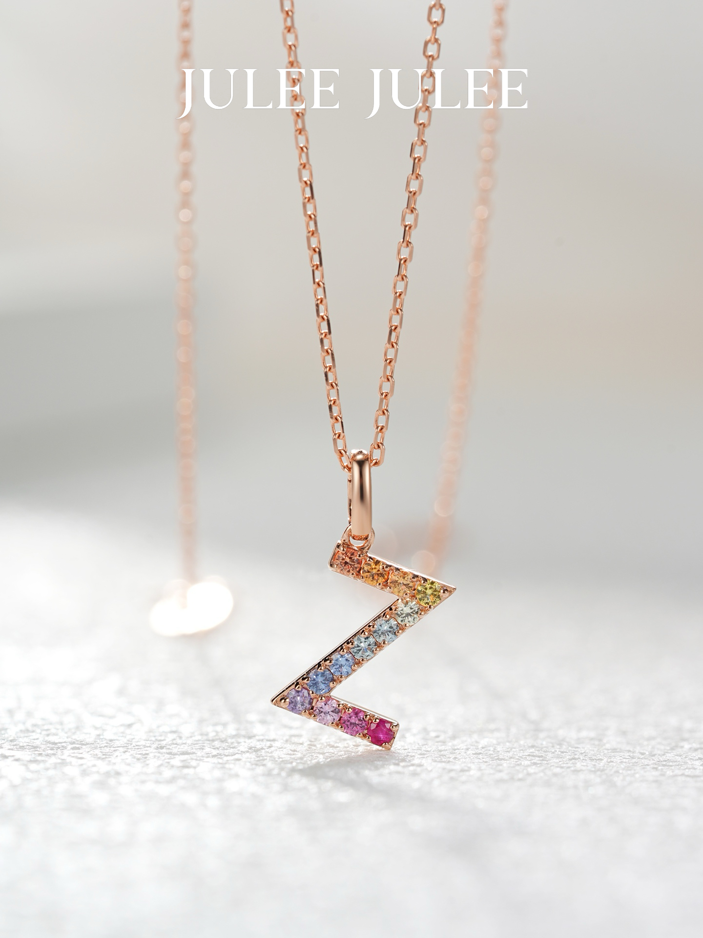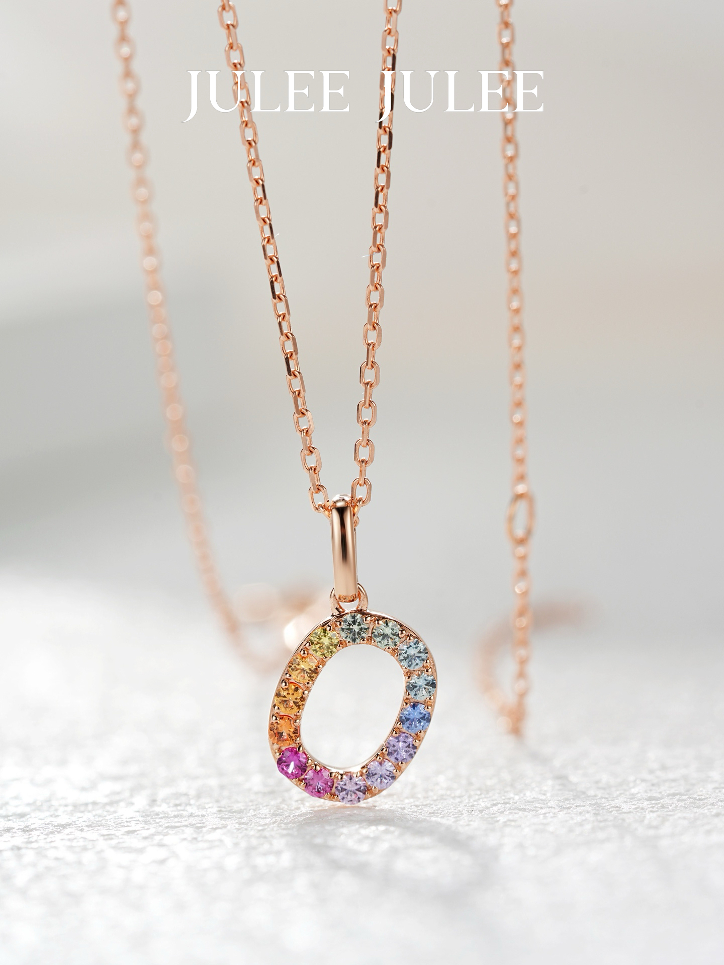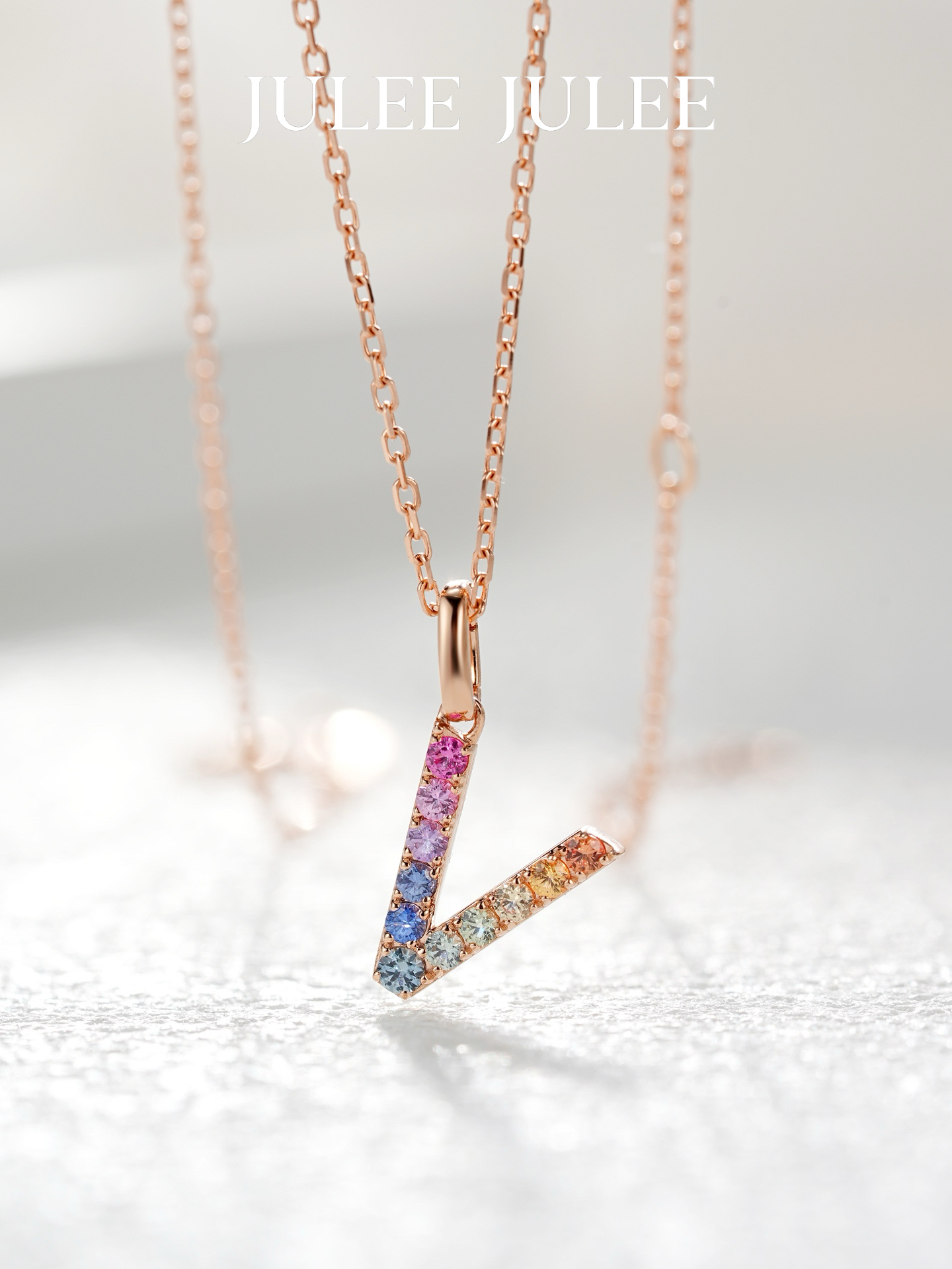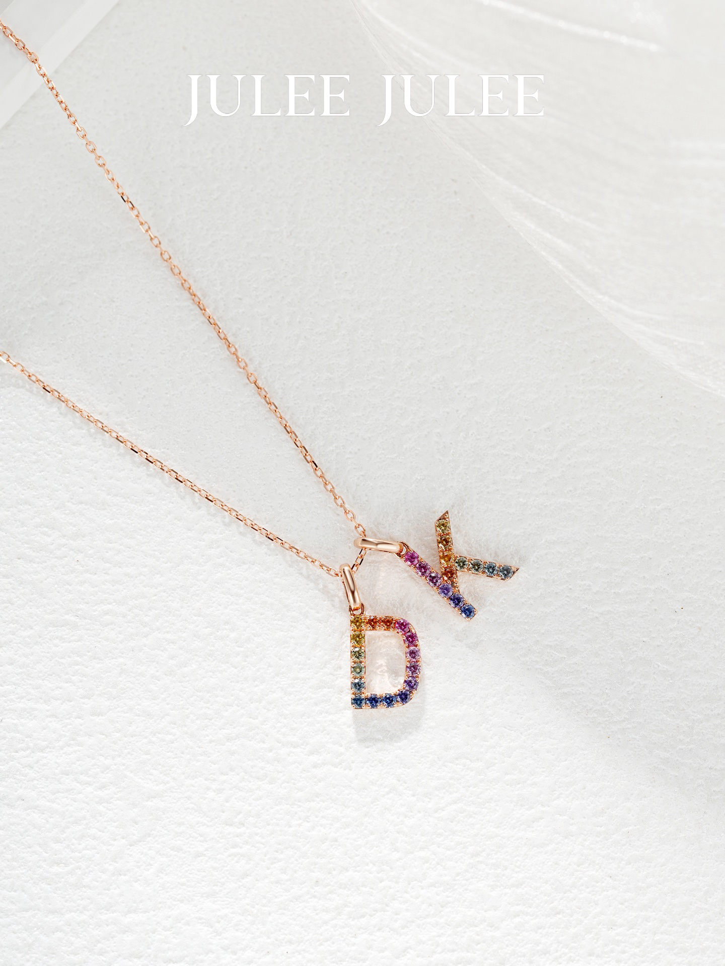 18K玫瑰金彩虹蓝宝石字母吊坠