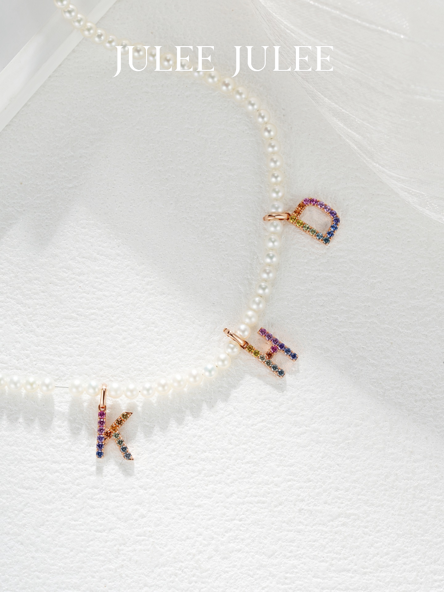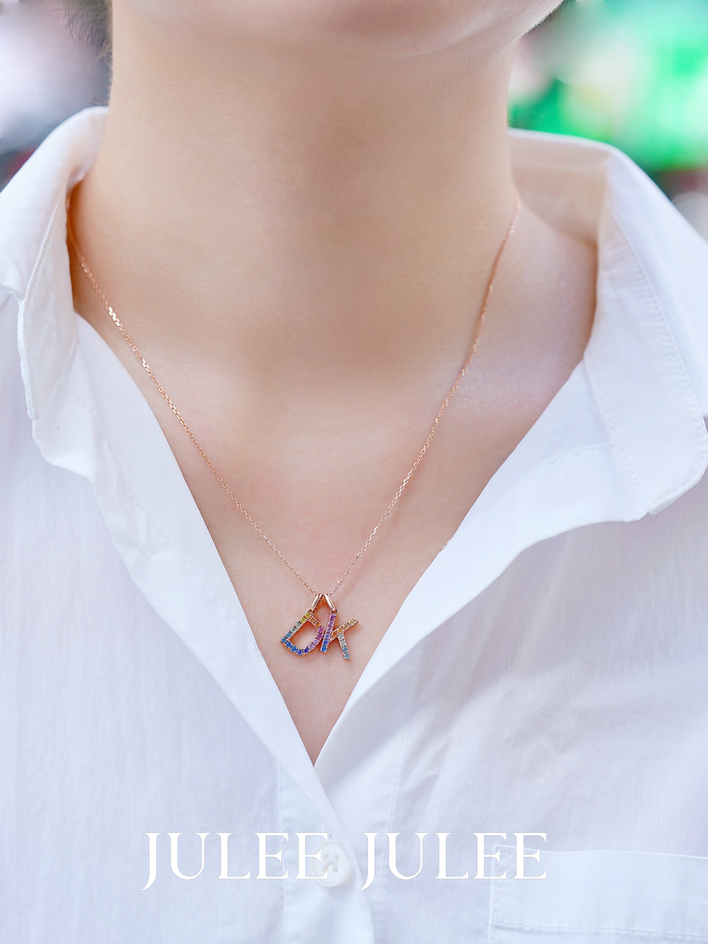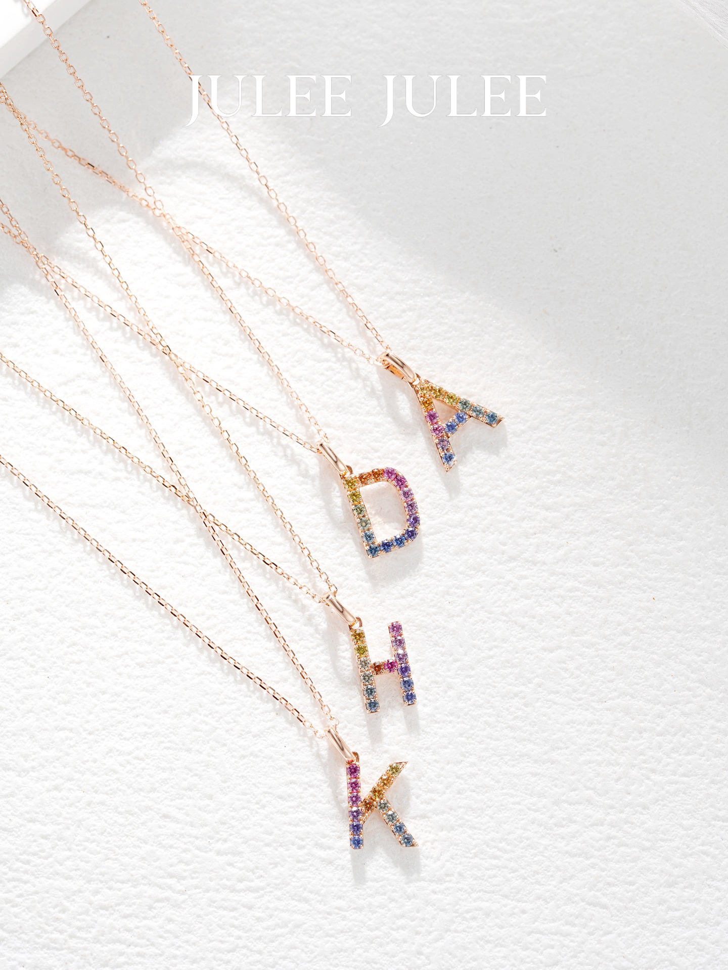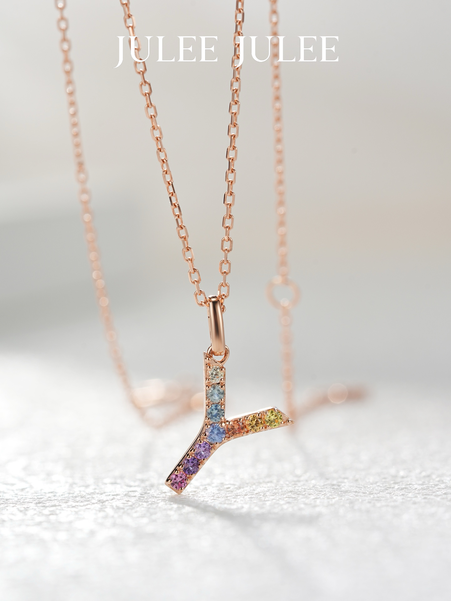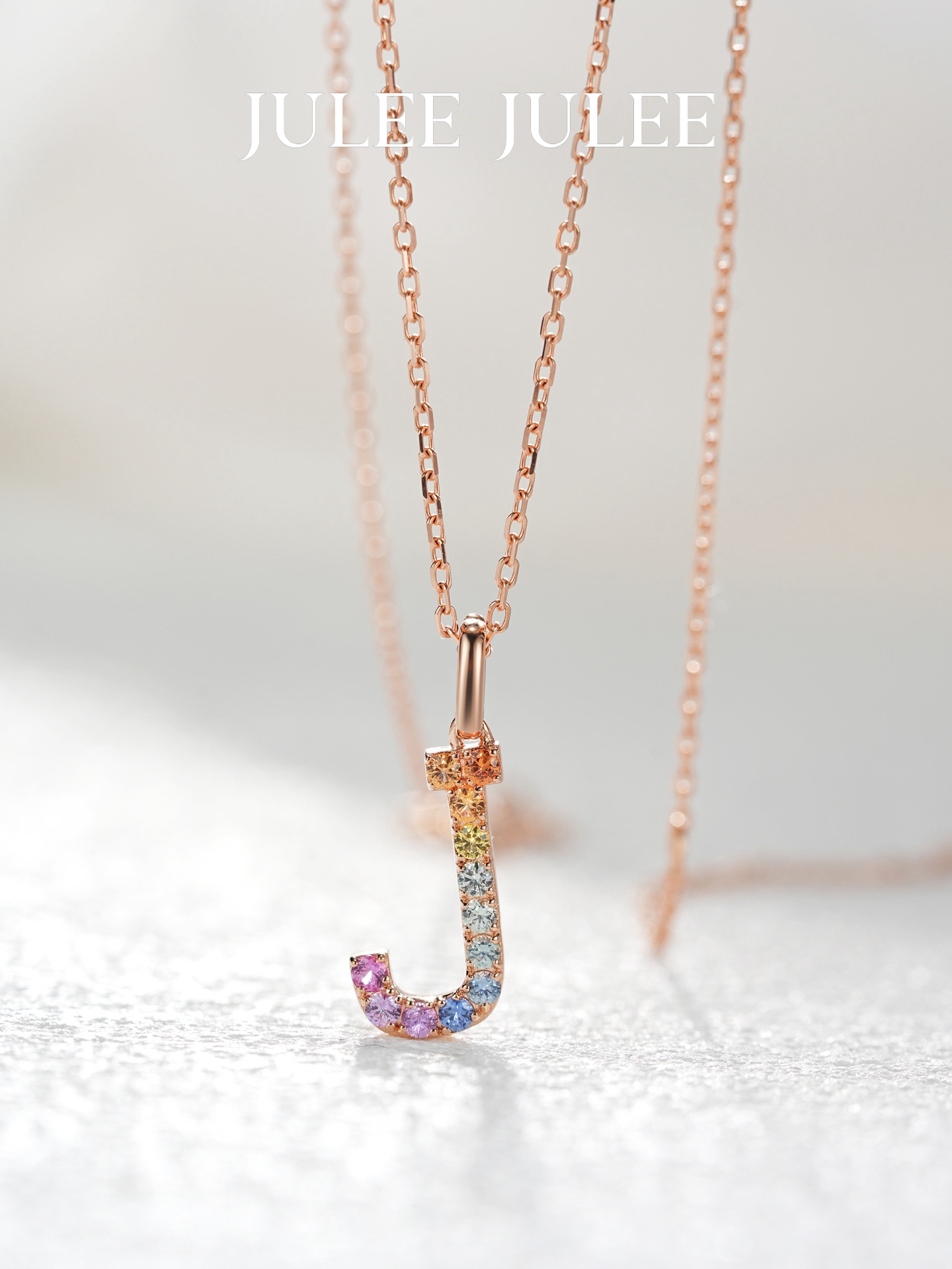 18K玫瑰金彩虹蓝宝石字母吊坠