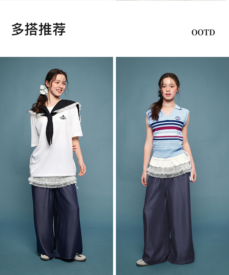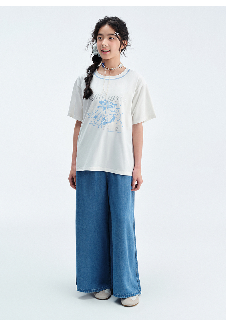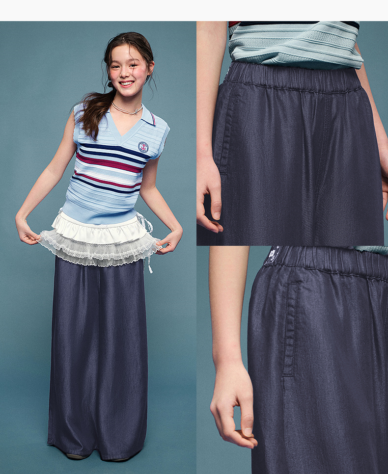 笛莎Deesha青少年女童裤子2025夏季女童阔腿裤