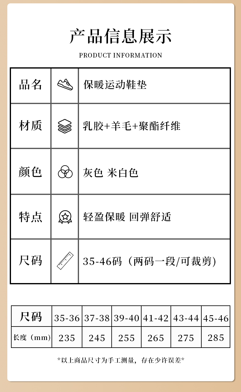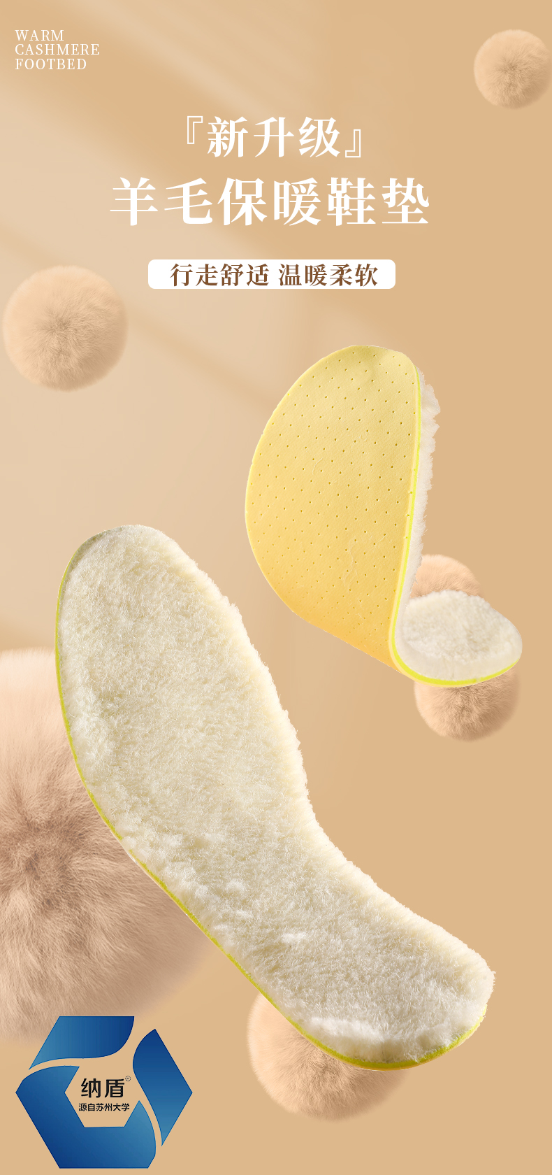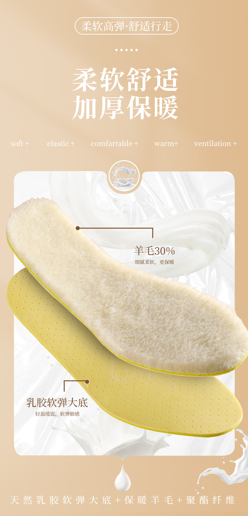 【脚底下的小火炉】抗菌乳胶羊毛保暖鞋垫 乳胶+羊毛 温暖加倍 软弹舒适 3A抗菌 轻盈不累脚