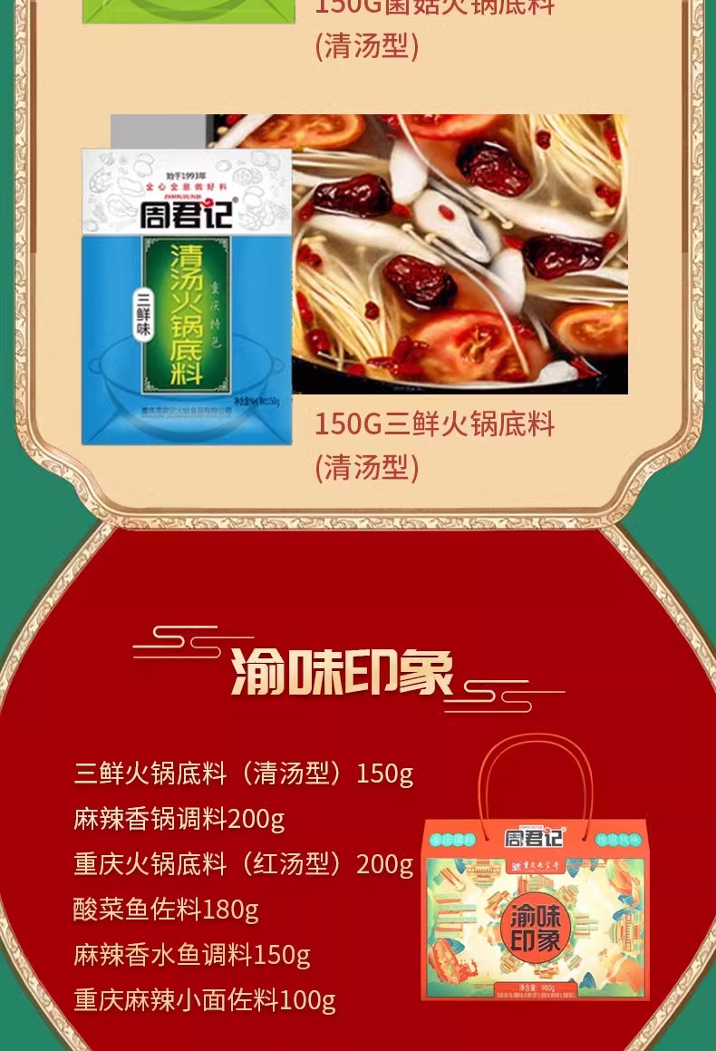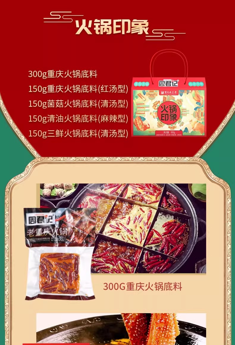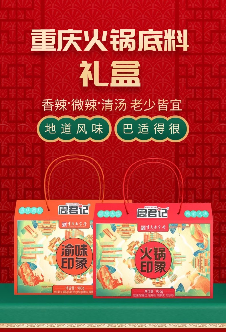 周君记火锅印象礼盒900g、渝味印象礼盒980g
