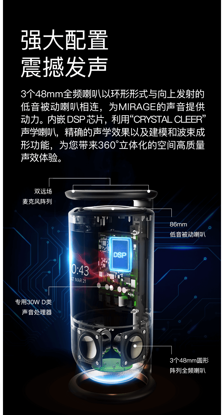 cleer mirage曲面显示屏无线智能wifi蓝牙音箱