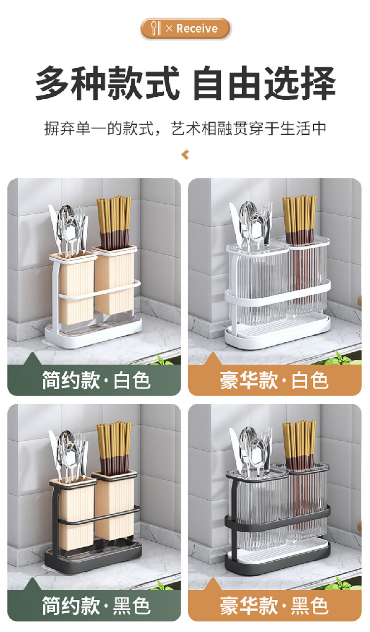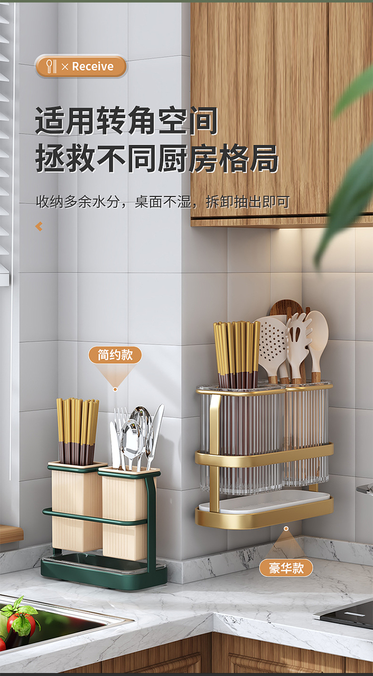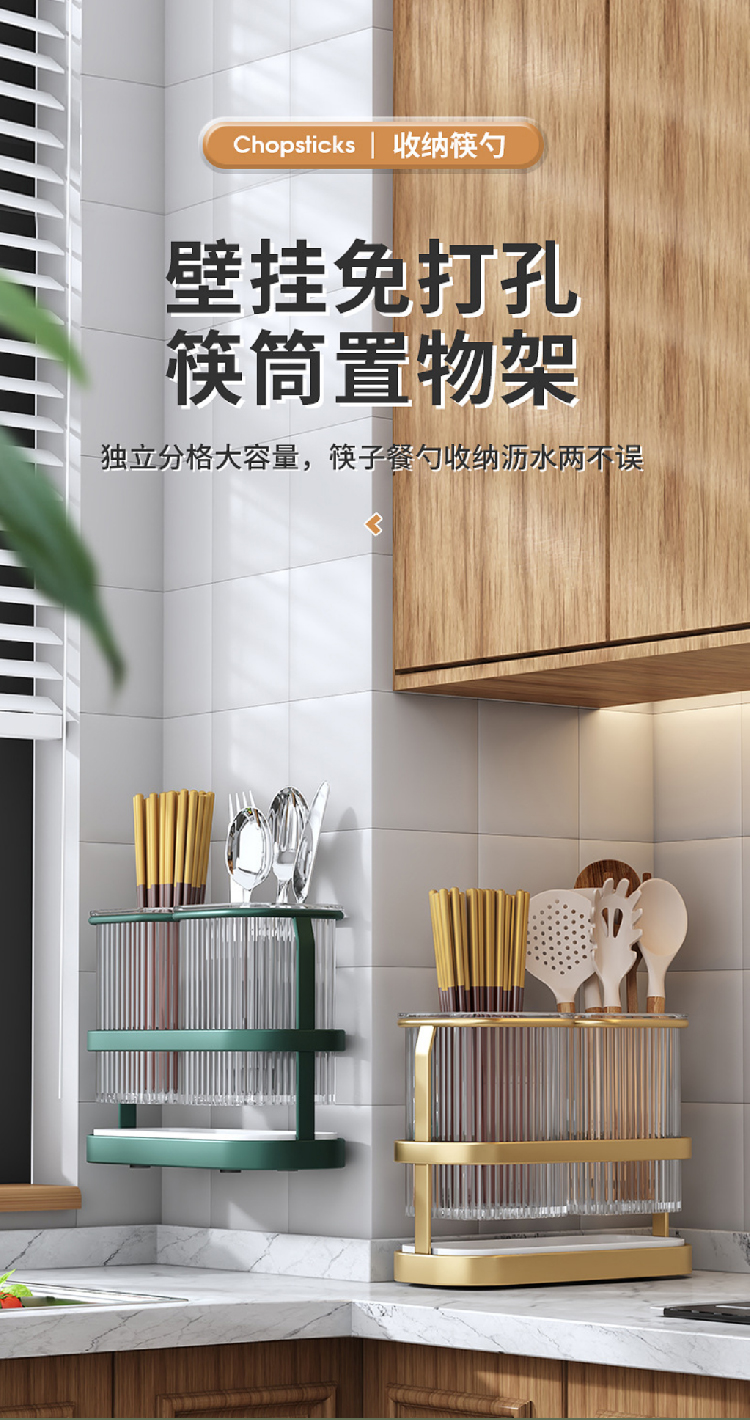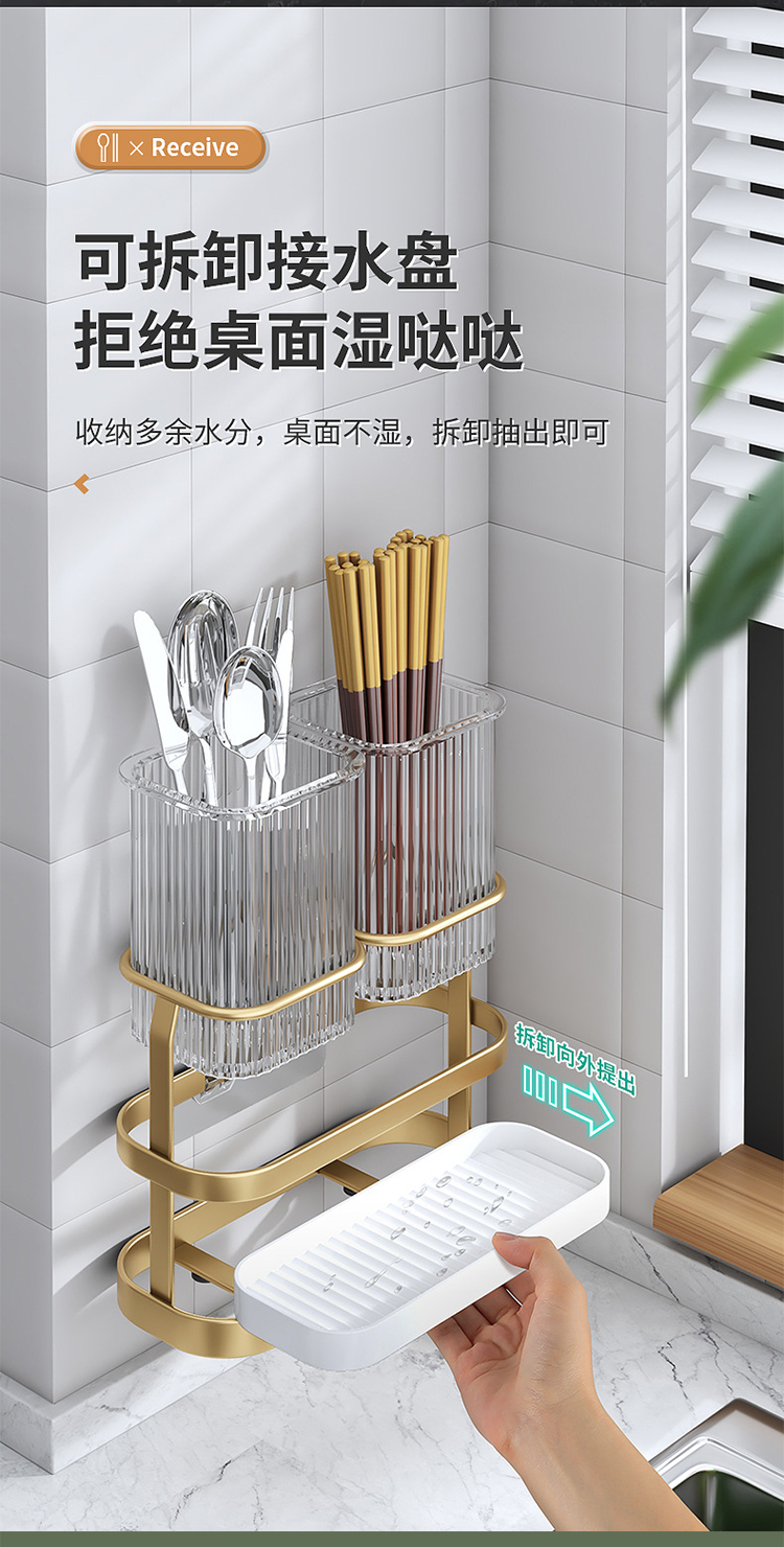 【筷子沥水筒】北欧轻奢风筷子筒可沥水筷笼铁艺 厨房勺子收纳盒可拆卸免打孔筷架