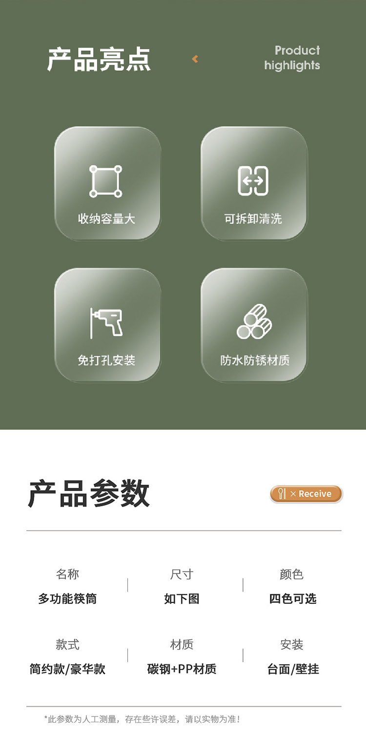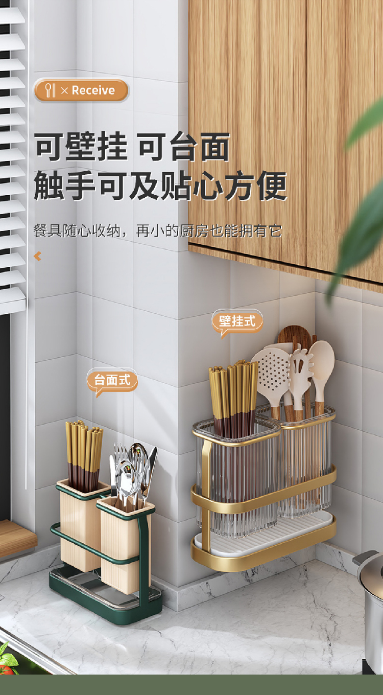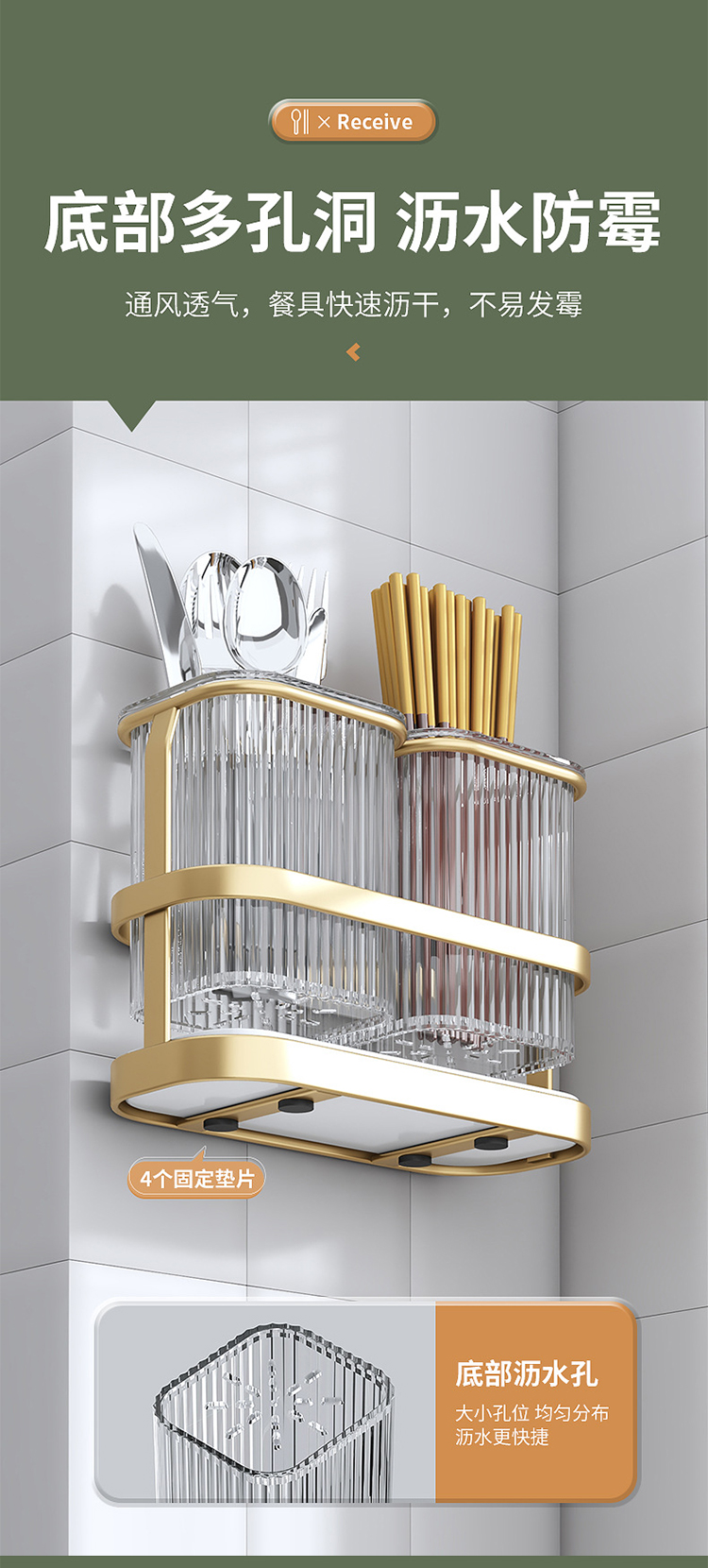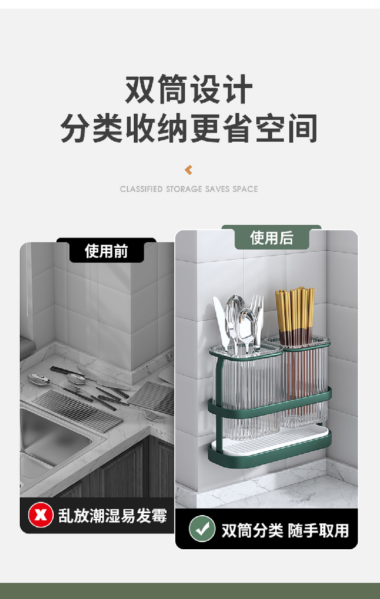 【筷子沥水筒】北欧轻奢风筷子筒可沥水筷笼铁艺 厨房勺子收纳盒可拆卸免打孔筷架