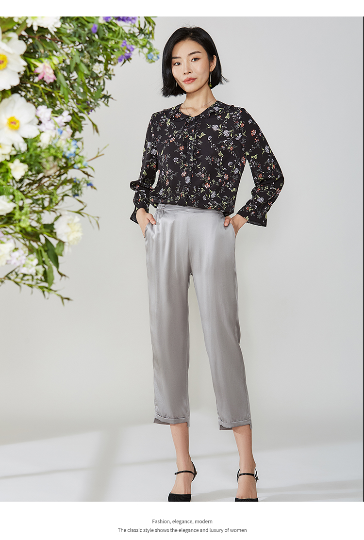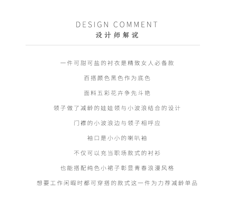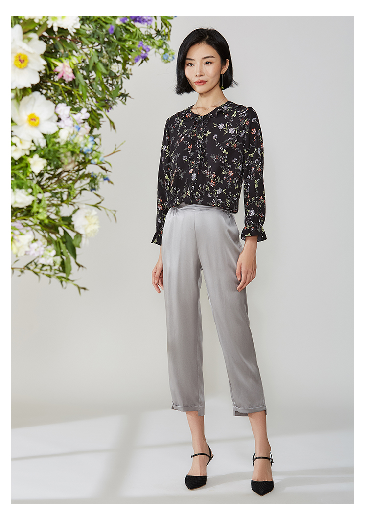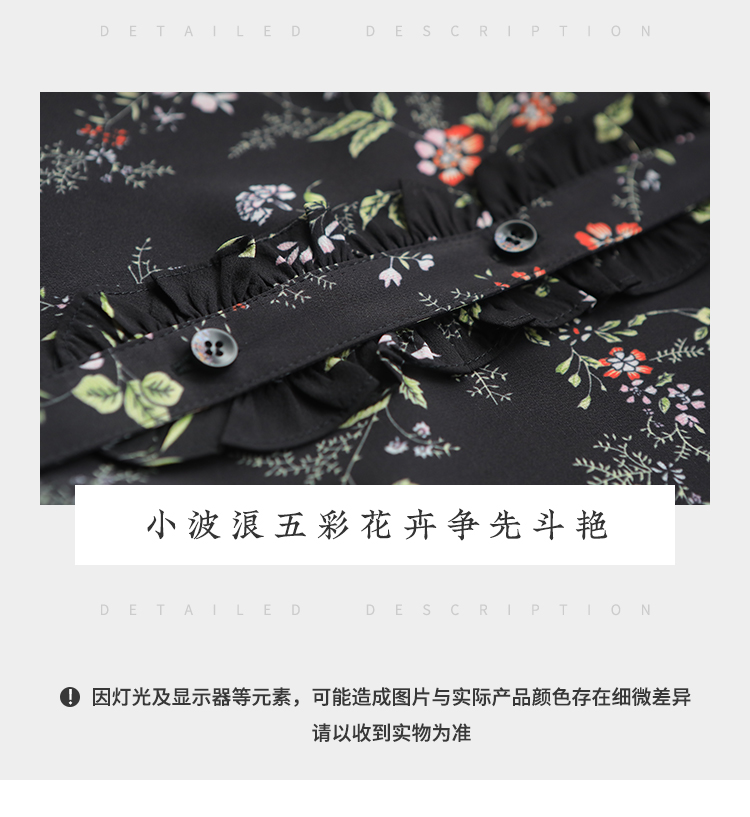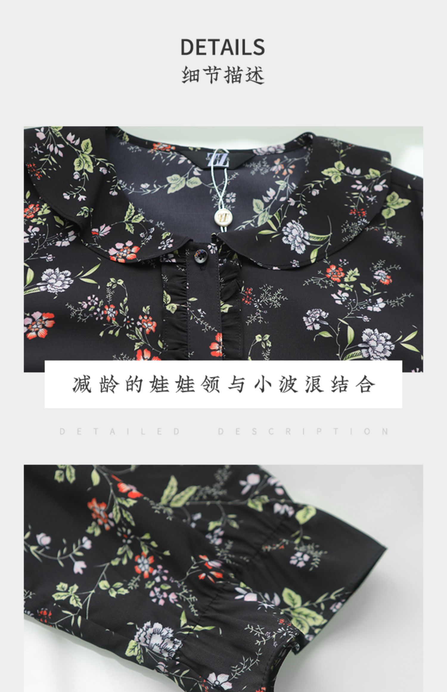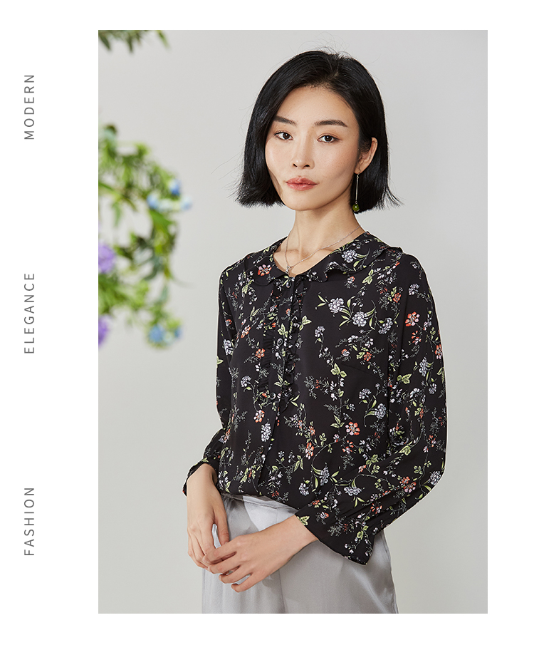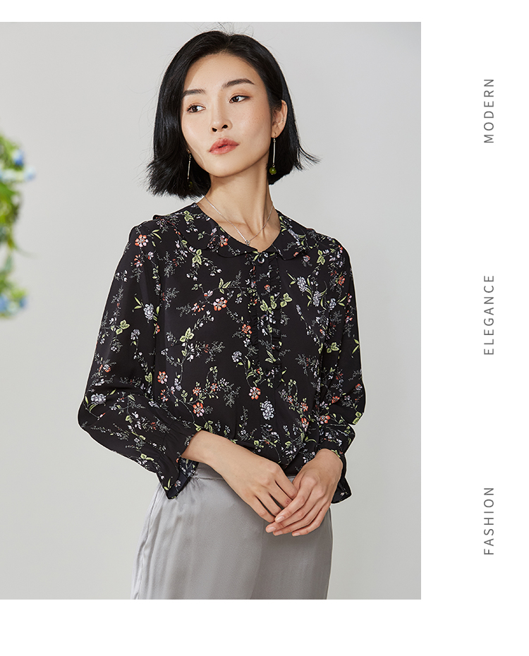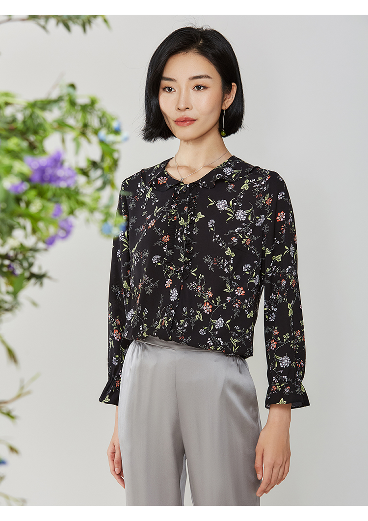佐尔美秋季新款黑色娃娃领碎花上衣衬衣E11CC30