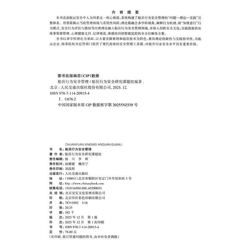 船员行为安全管理 船员管理系列丛书 人民交通出版社