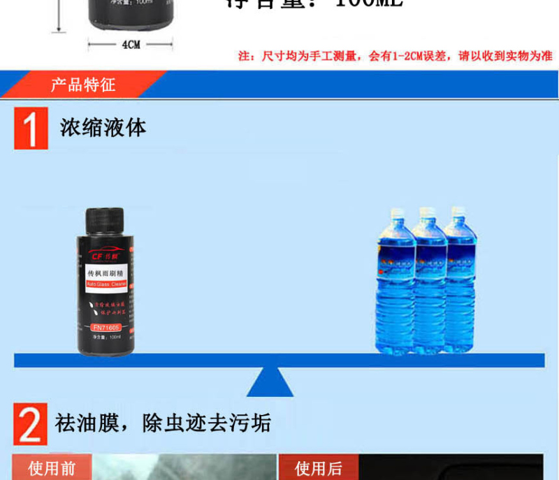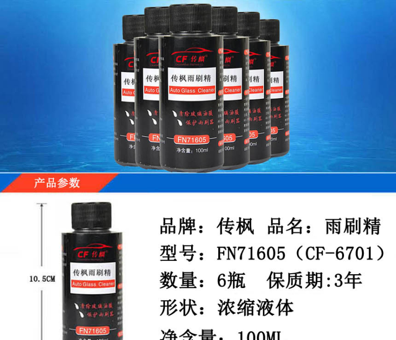 传枫(6瓶装)汽车玻璃水汽车玻璃清洗剂 浓缩雨刮精 雨刷精CF-6701