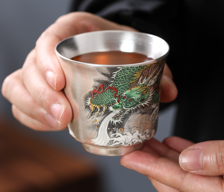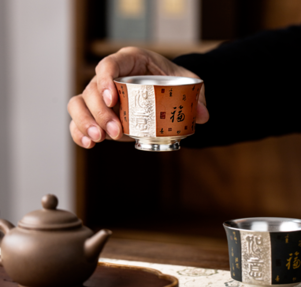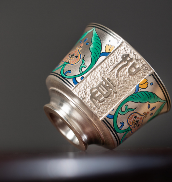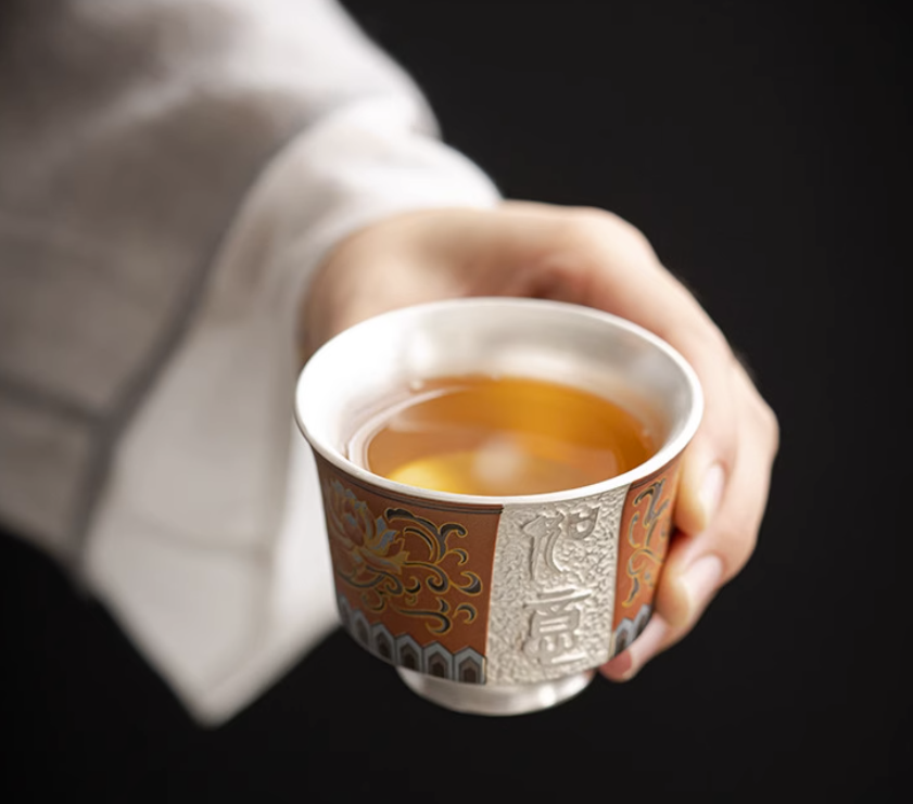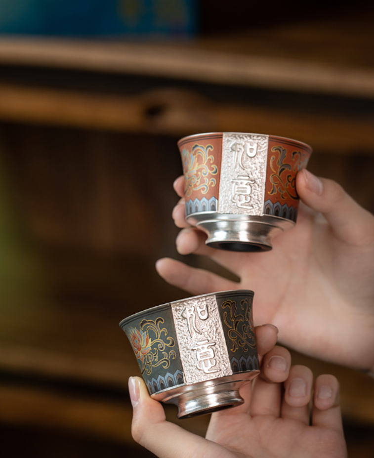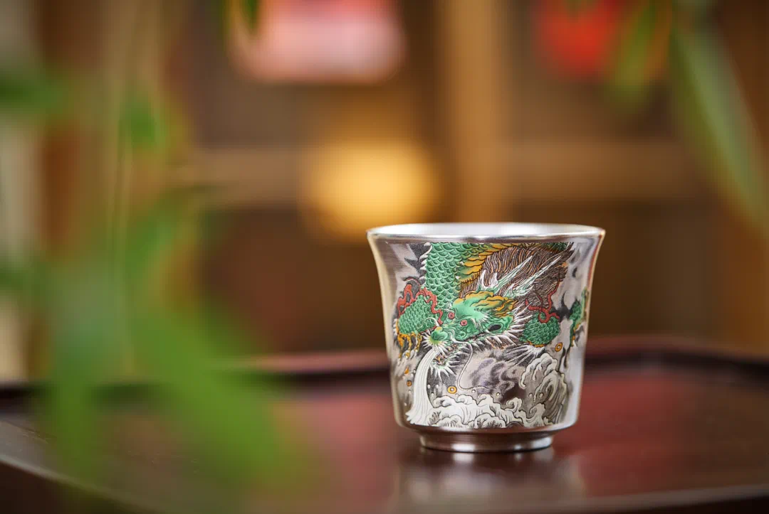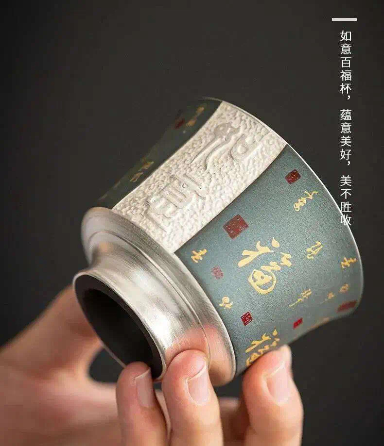 【鎏银外镀 银杯】银做的却很少,非常特别。 内部以瓷器为基调,鎏银外镀,用了99足银来制作,杯身是由珐琅和粉彩工艺绘制的纹理,复古又贵气。 古典有韵味,还带有中式的朴素典雅!