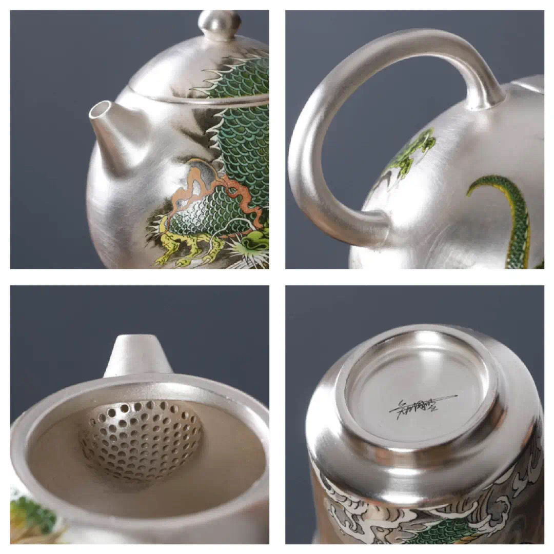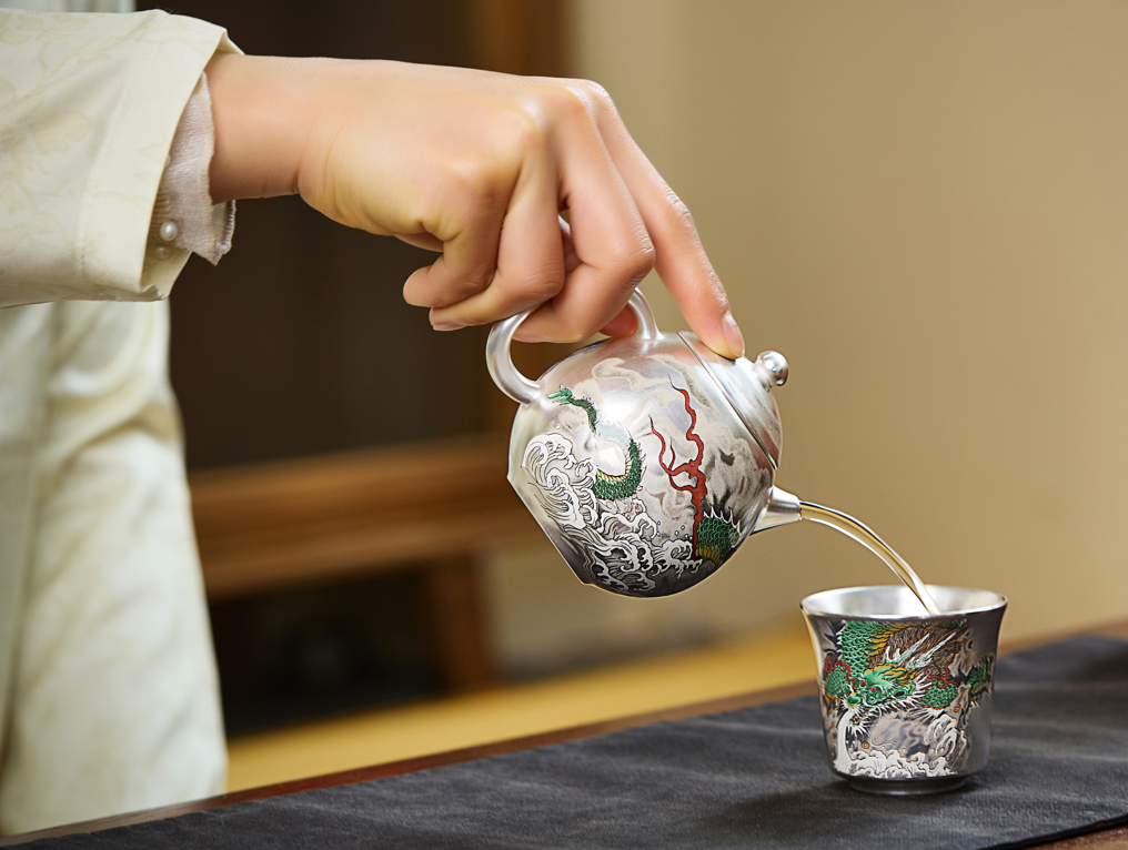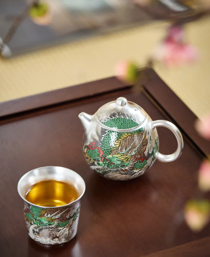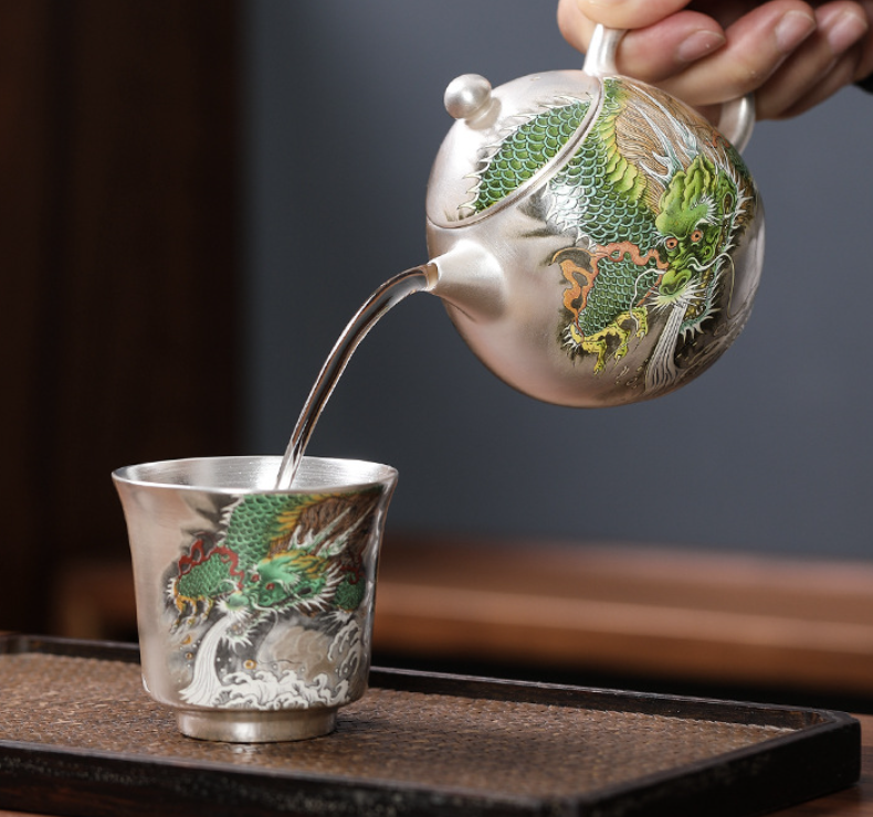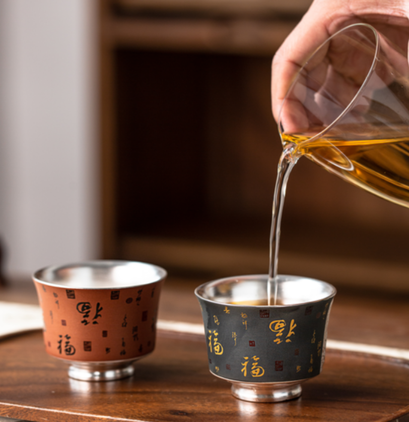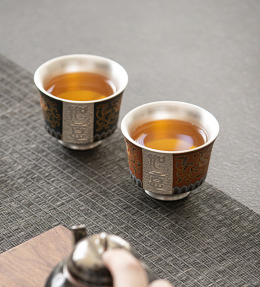 【鎏银外镀 银杯】银做的却很少,非常特别。 内部以瓷器为基调,鎏银外镀,用了99足银来制作,杯身是由珐琅和粉彩工艺绘制的纹理,复古又贵气。 古典有韵味,还带有中式的朴素典雅!