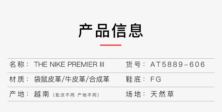 NIKE/耐克Premier III FG长钉袋鼠皮足球鞋成人男AT5889-606