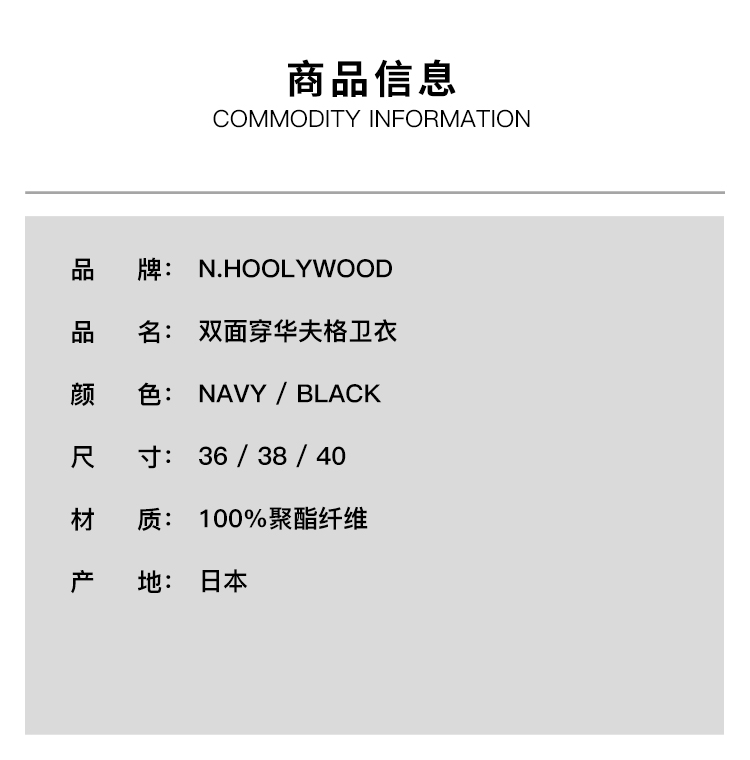 N.HOOLYWOOD SWEATSHIRT 男装军事系列双面穿华夫格轻量透气卫衣