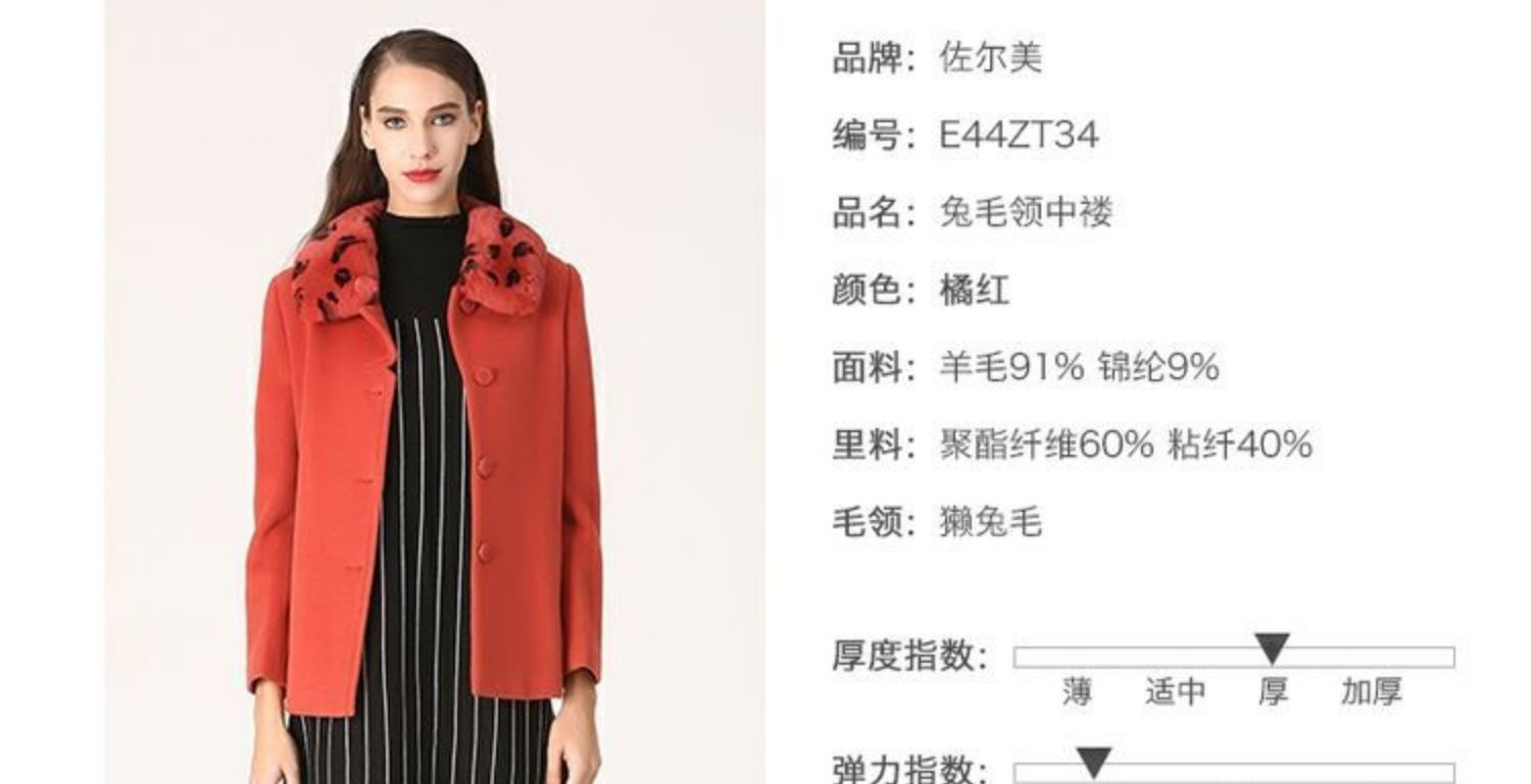 佐尔美冬纯色大码女装中长款修身显瘦羊毛大衣毛呢外套女E54ZZ18