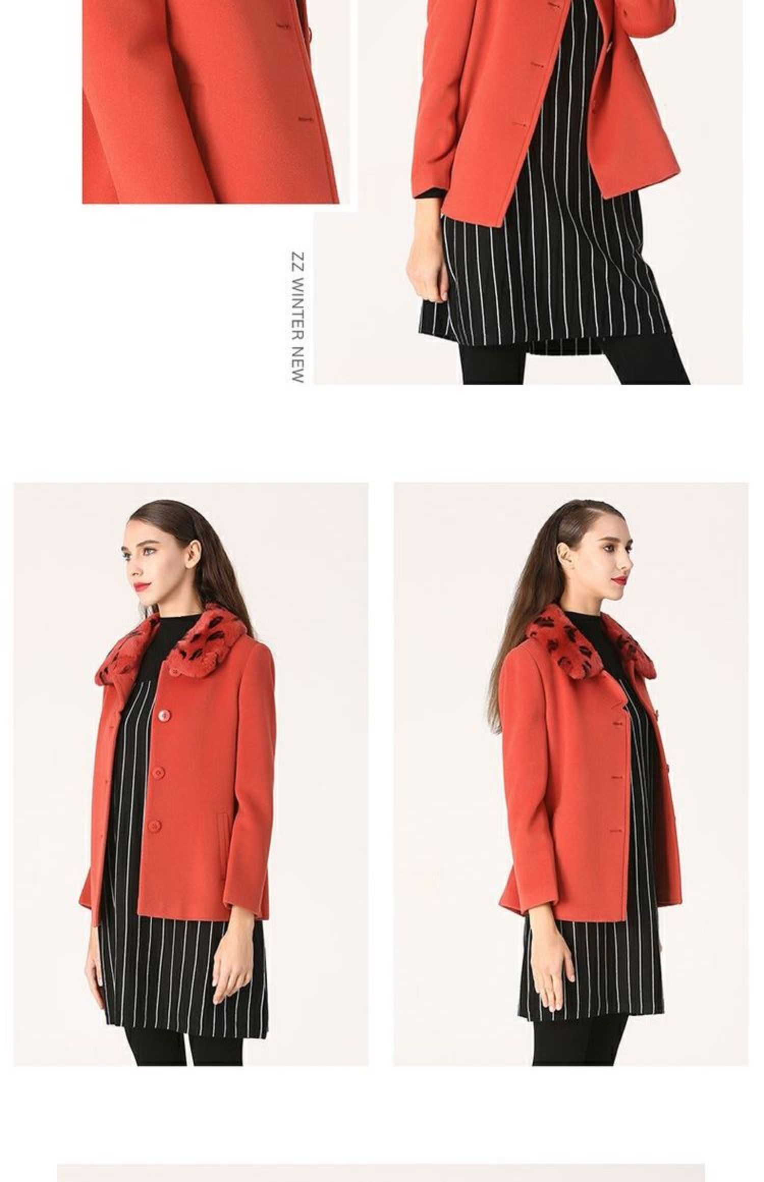 佐尔美冬季女装纯色百搭毛领羊毛呢子大衣外套中褛E44ZT34