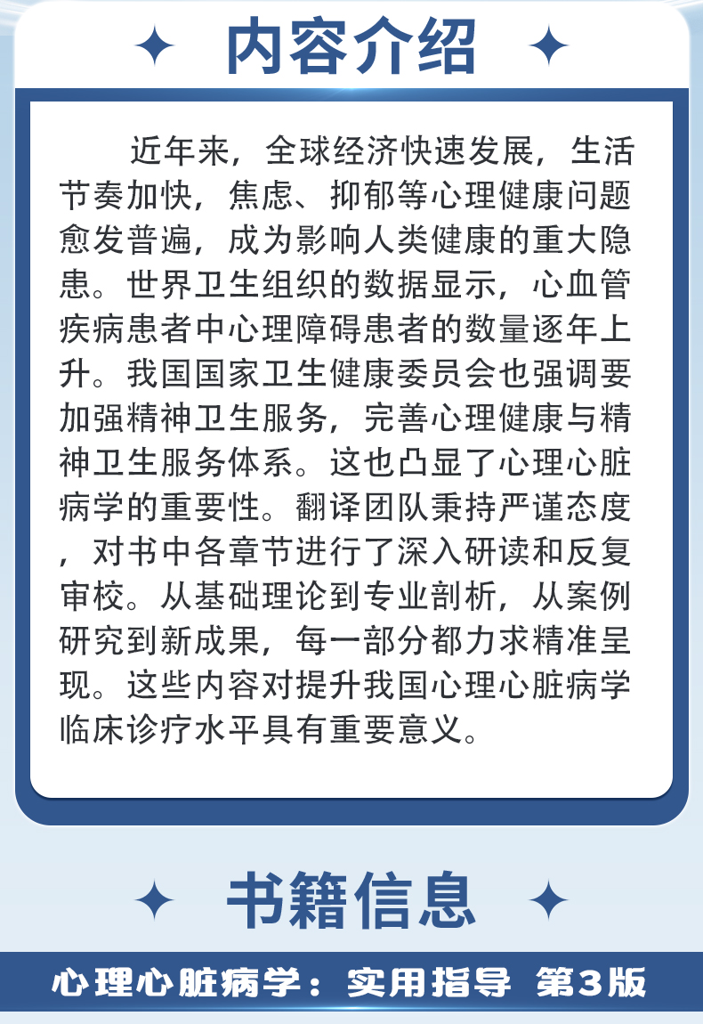 心理心脏病学:实用指导 第3三版 张睿智 汪友平 梁燕 主译 心脏病的主要特点 心理心脏病学中的伦理问题 北京大学医学出版社