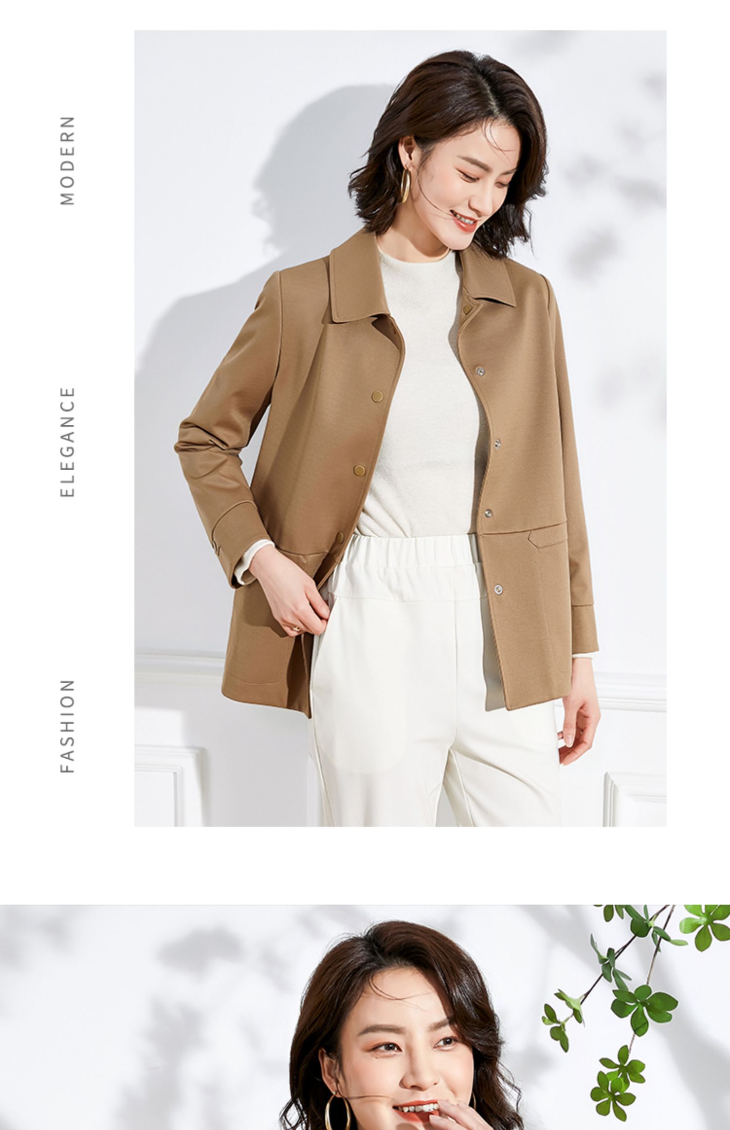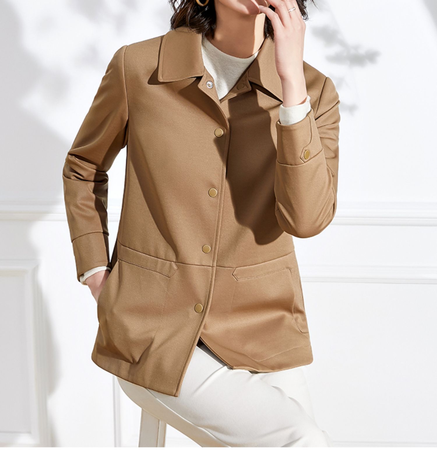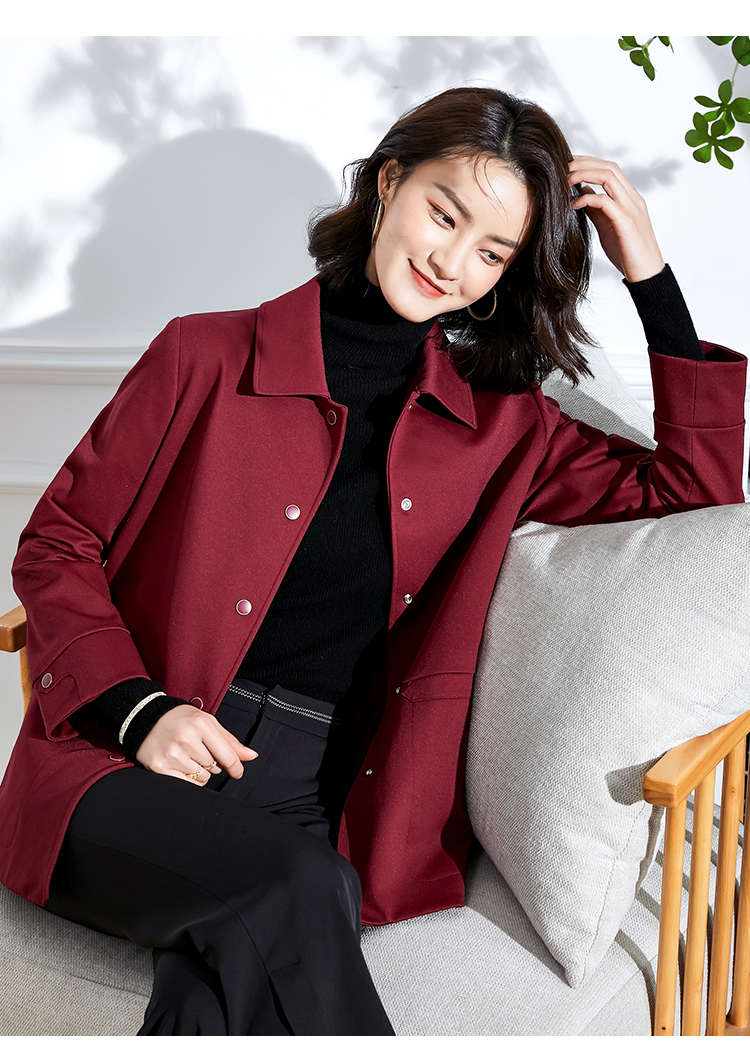 佐尔美春秋季女装纯色印花修身显瘦七分袖风衣外套E71FZ02