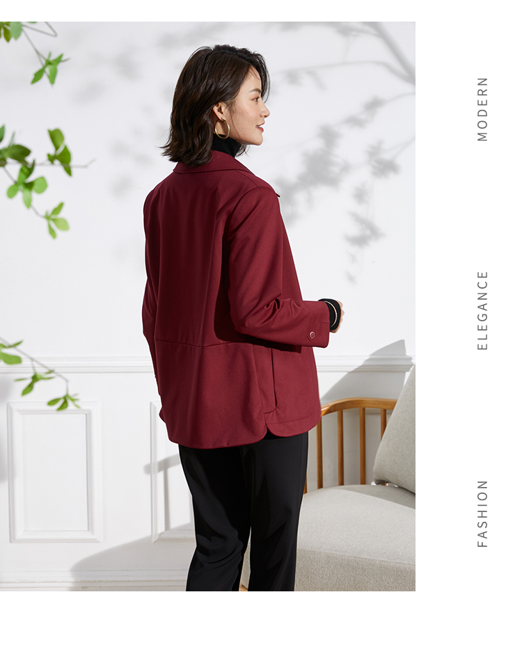 佐尔美2022春季新款气质时尚百搭针织卡其色红色休闲上衣E11FZ14