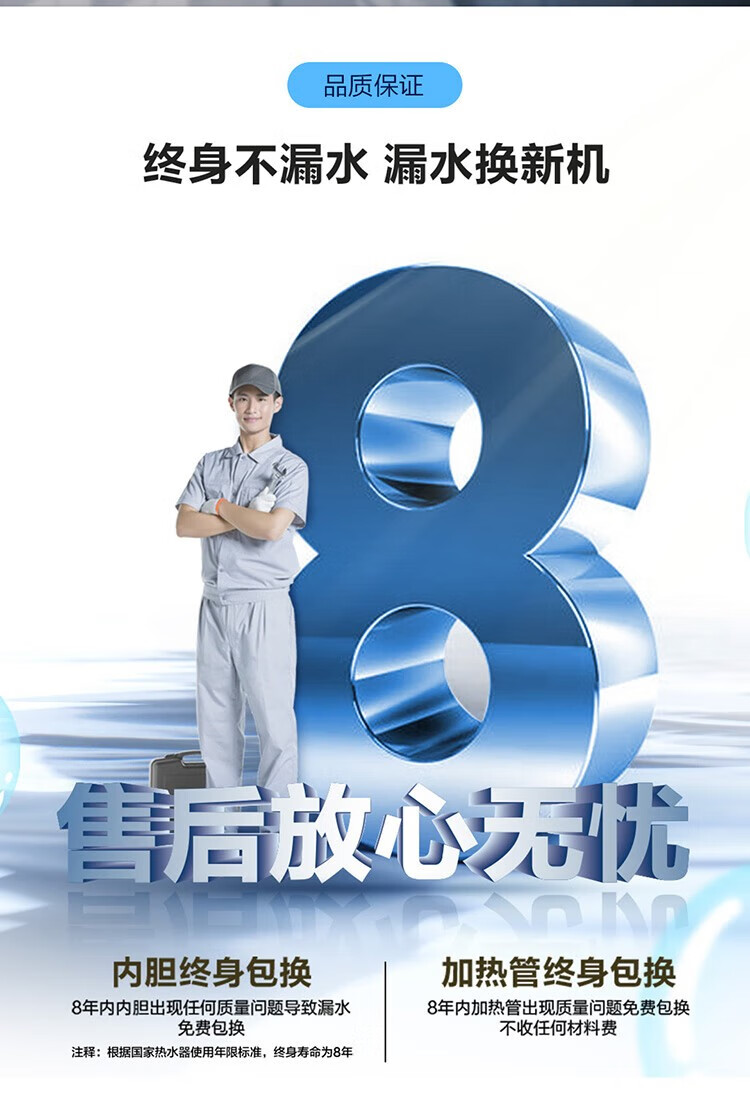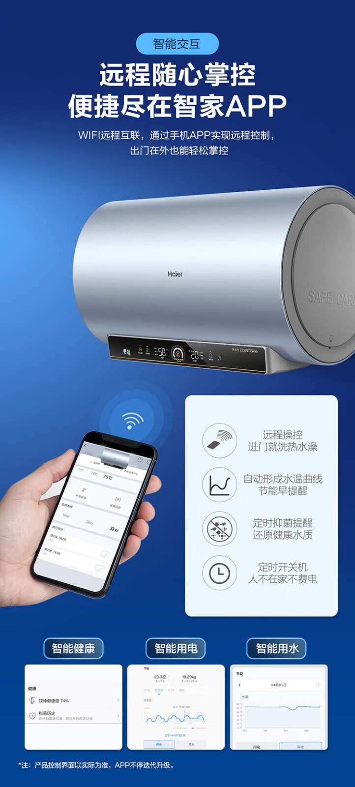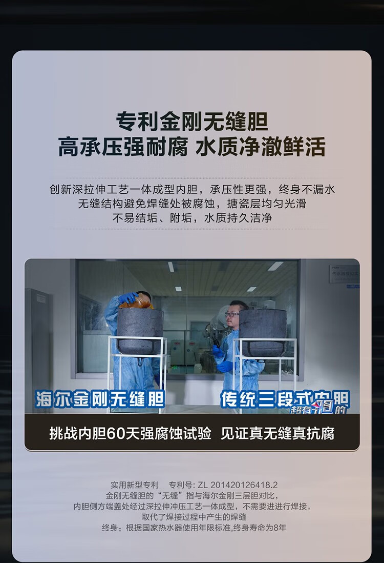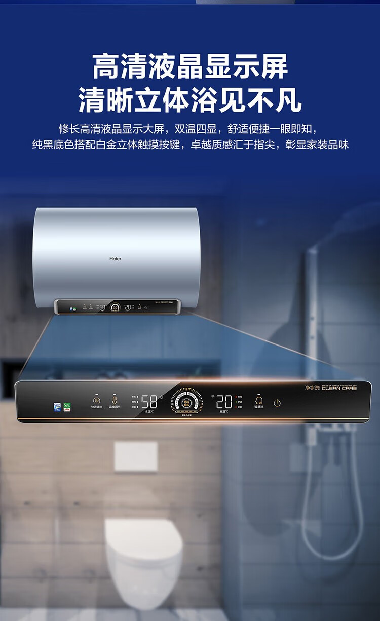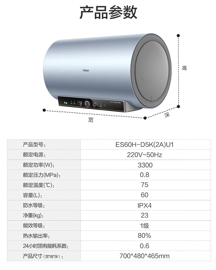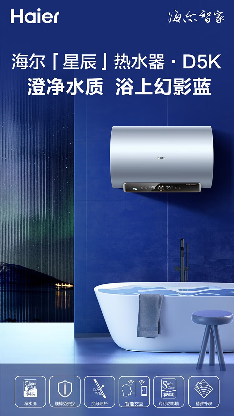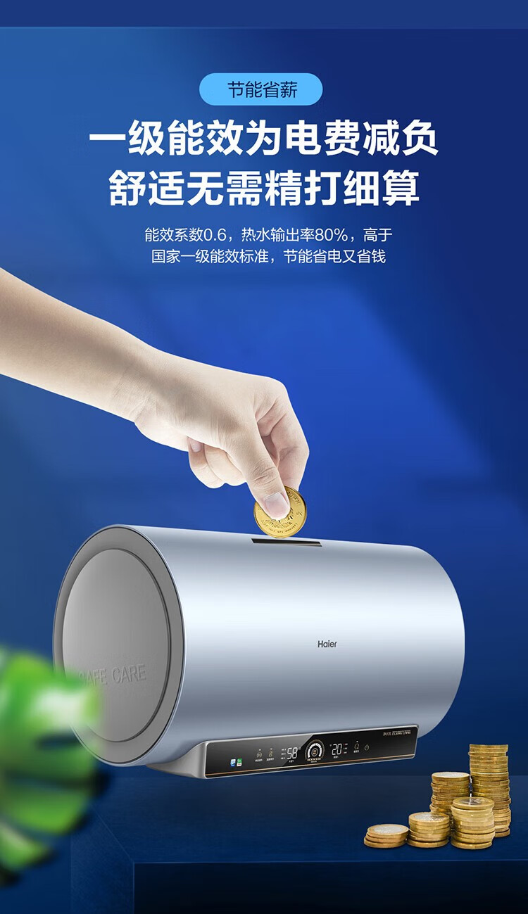 Haier海尔(Haier)电热水器60升短款小型 变频速热 内胆免清洗镁棒免更换 一级能效节能净水抑垢 60升3300W短款ES60H-D5K(2A)U1