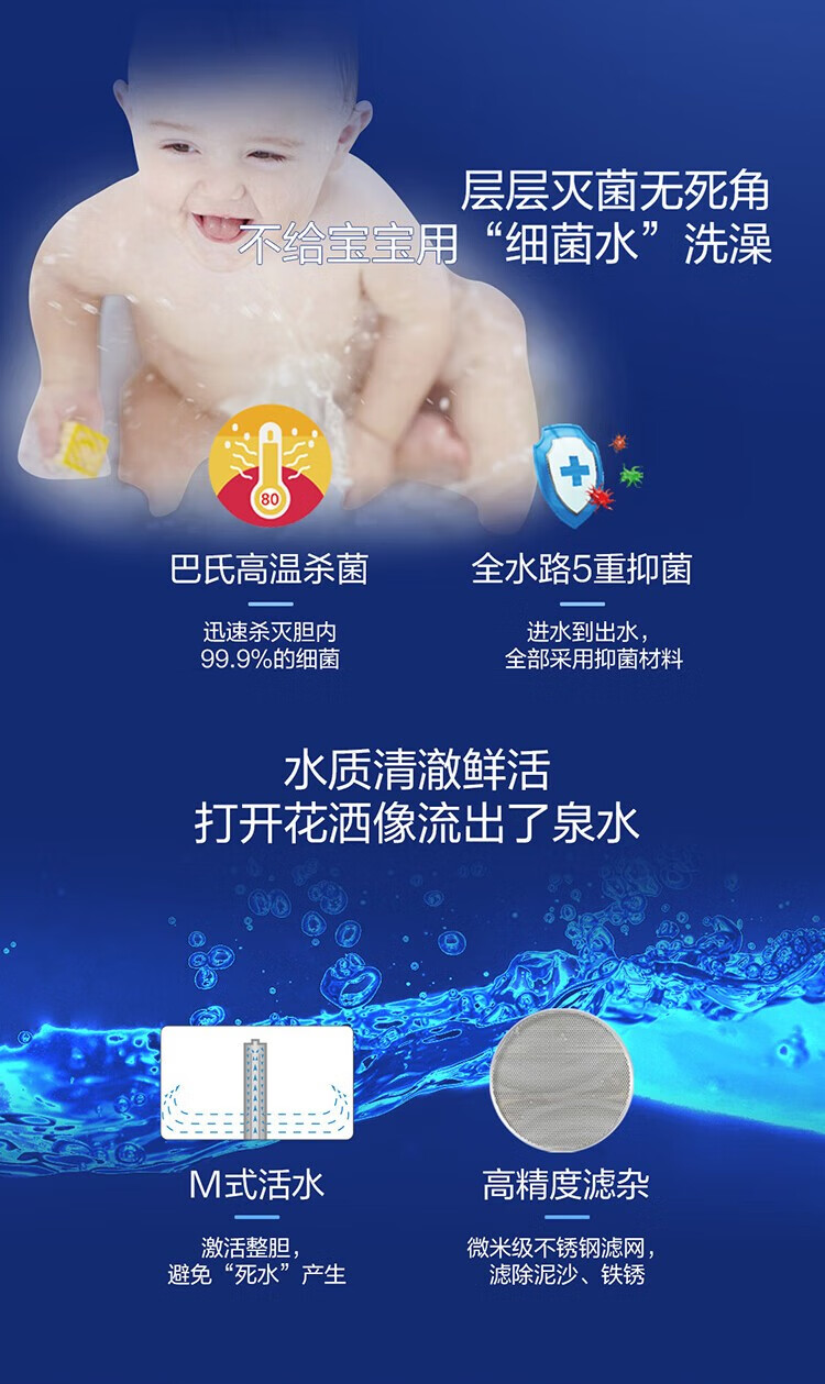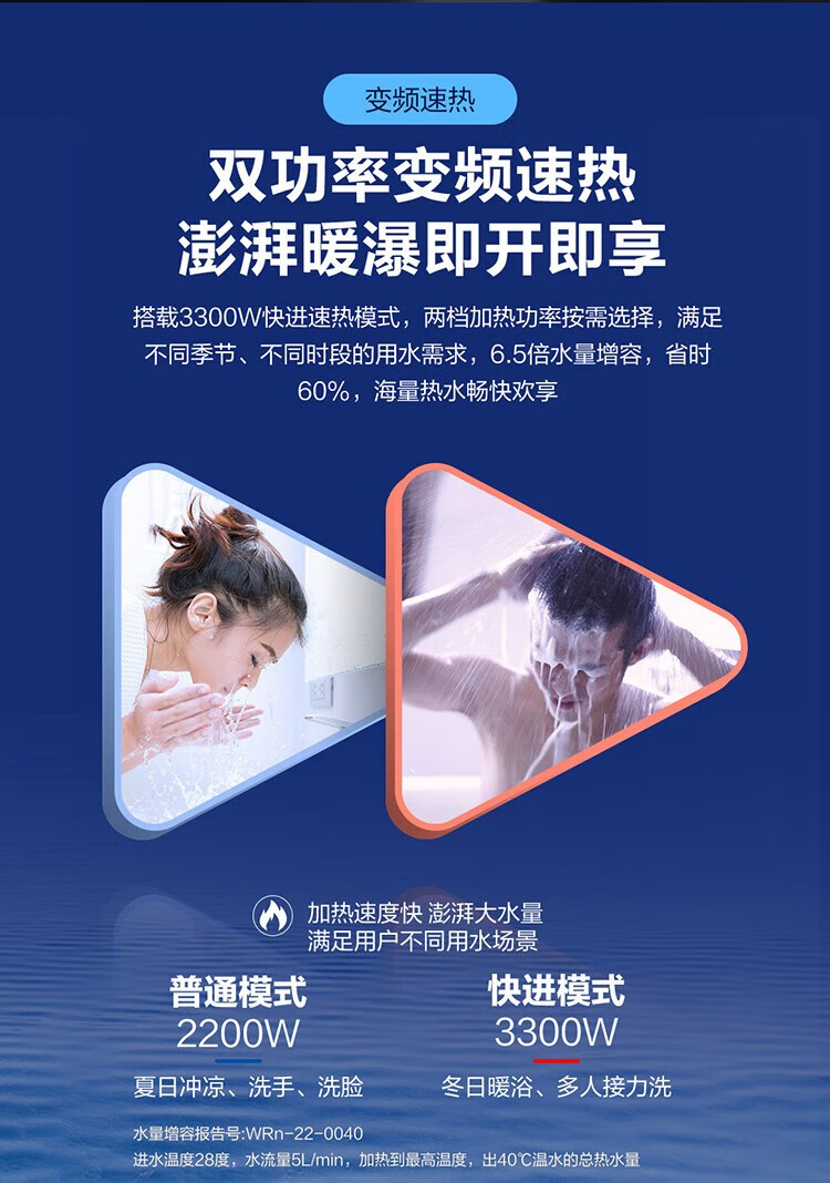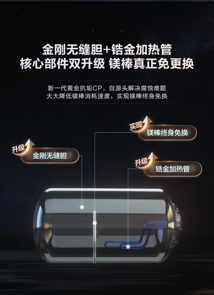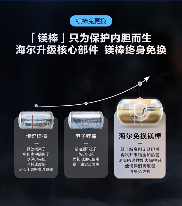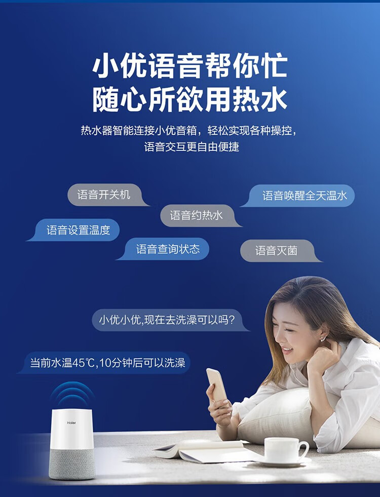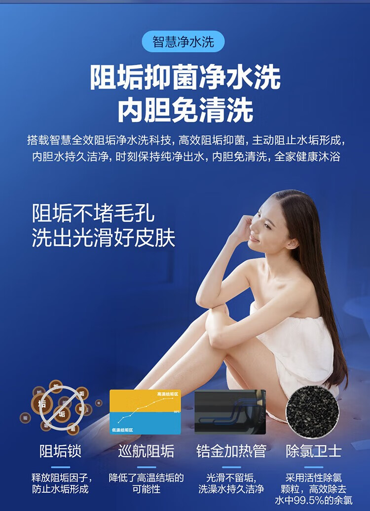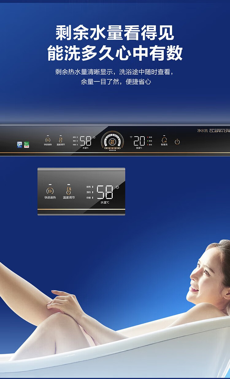 Haier海尔(Haier)电热水器60升短款小型 变频速热 内胆免清洗镁棒免更换 一级能效节能净水抑垢 60升3300W短款ES60H-D5K(2A)U1
