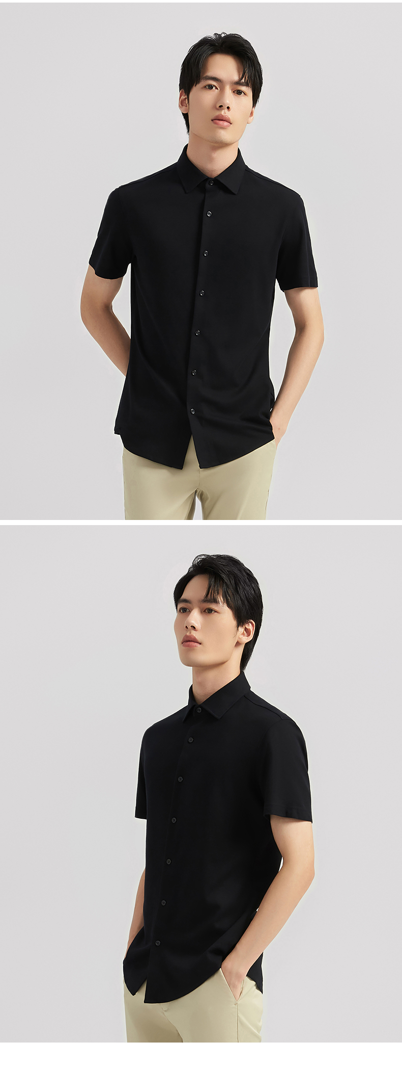 十如仕100%新疆长绒棉液氨丝光针织短袖衬衫-KS01