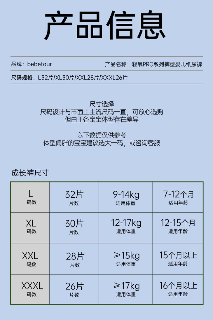 bebetour 轻氧PRO系列婴儿纸尿裤拉拉裤