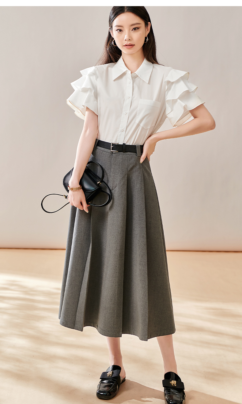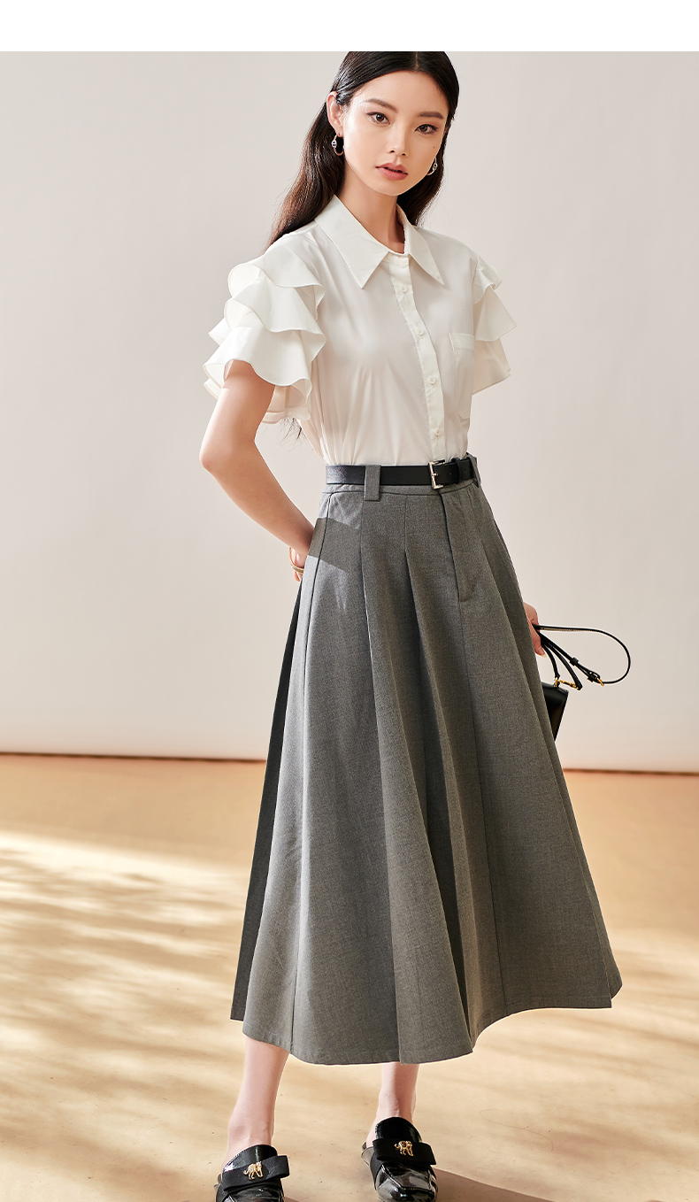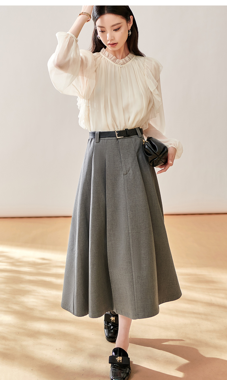 芳外新款简约通勤半身裙显瘦西装高腰A字裙女8T23CI1028