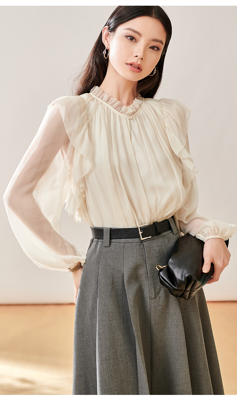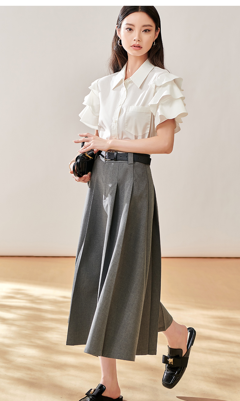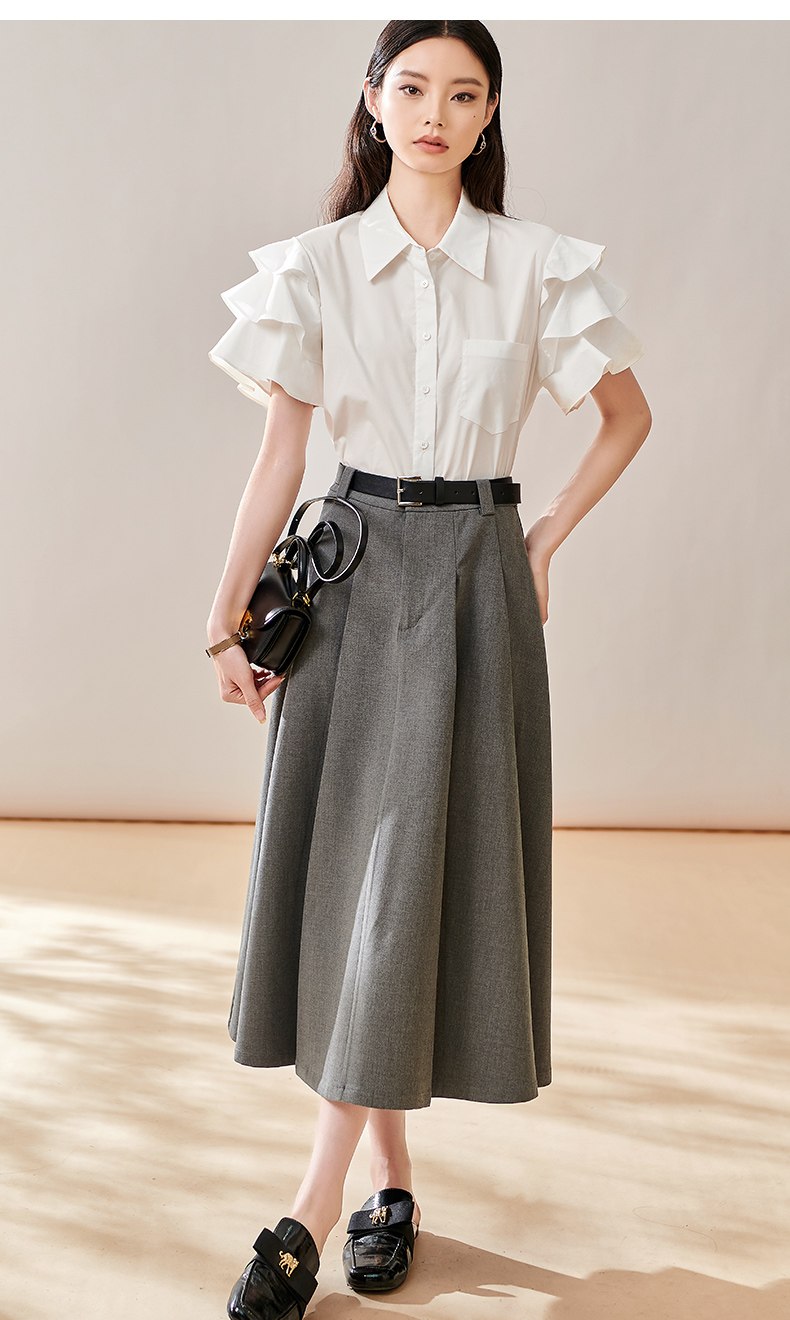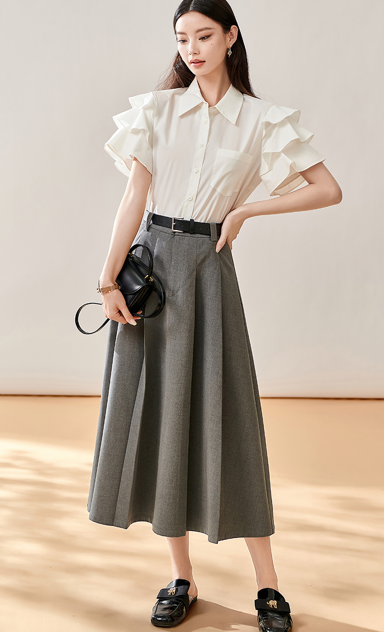 芳外新款简约通勤半身裙显瘦西装高腰A字裙女8T23CI1028