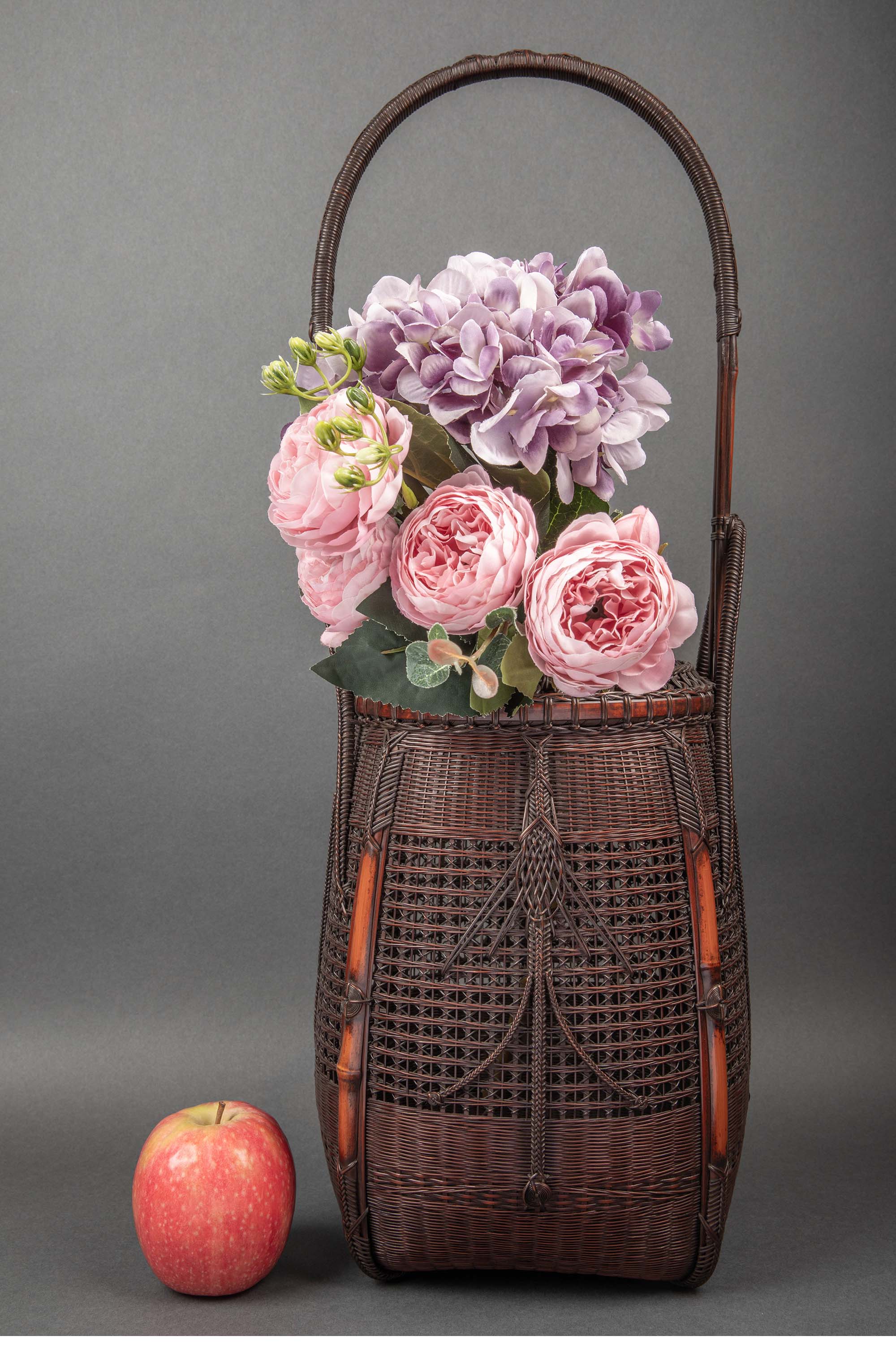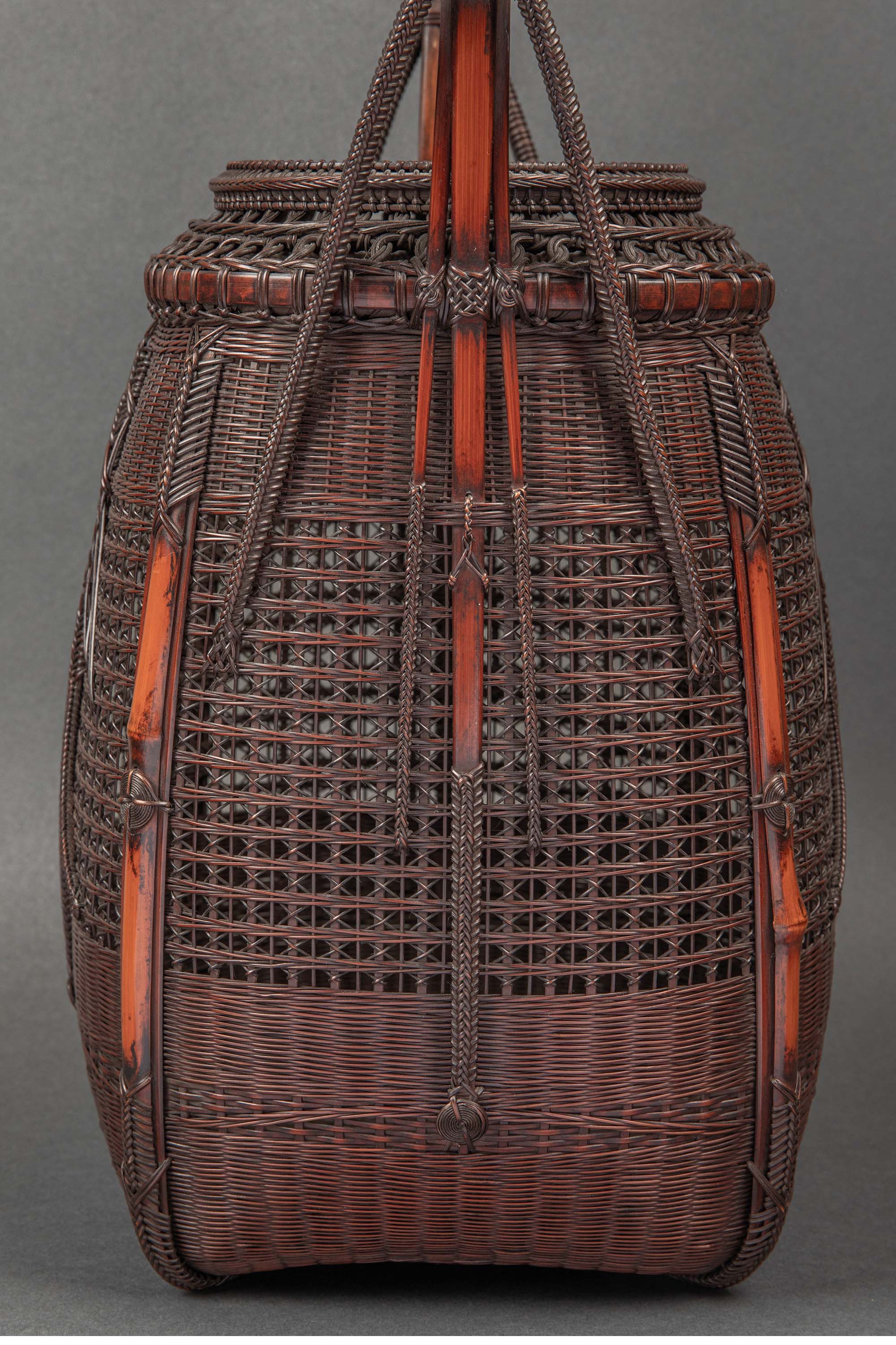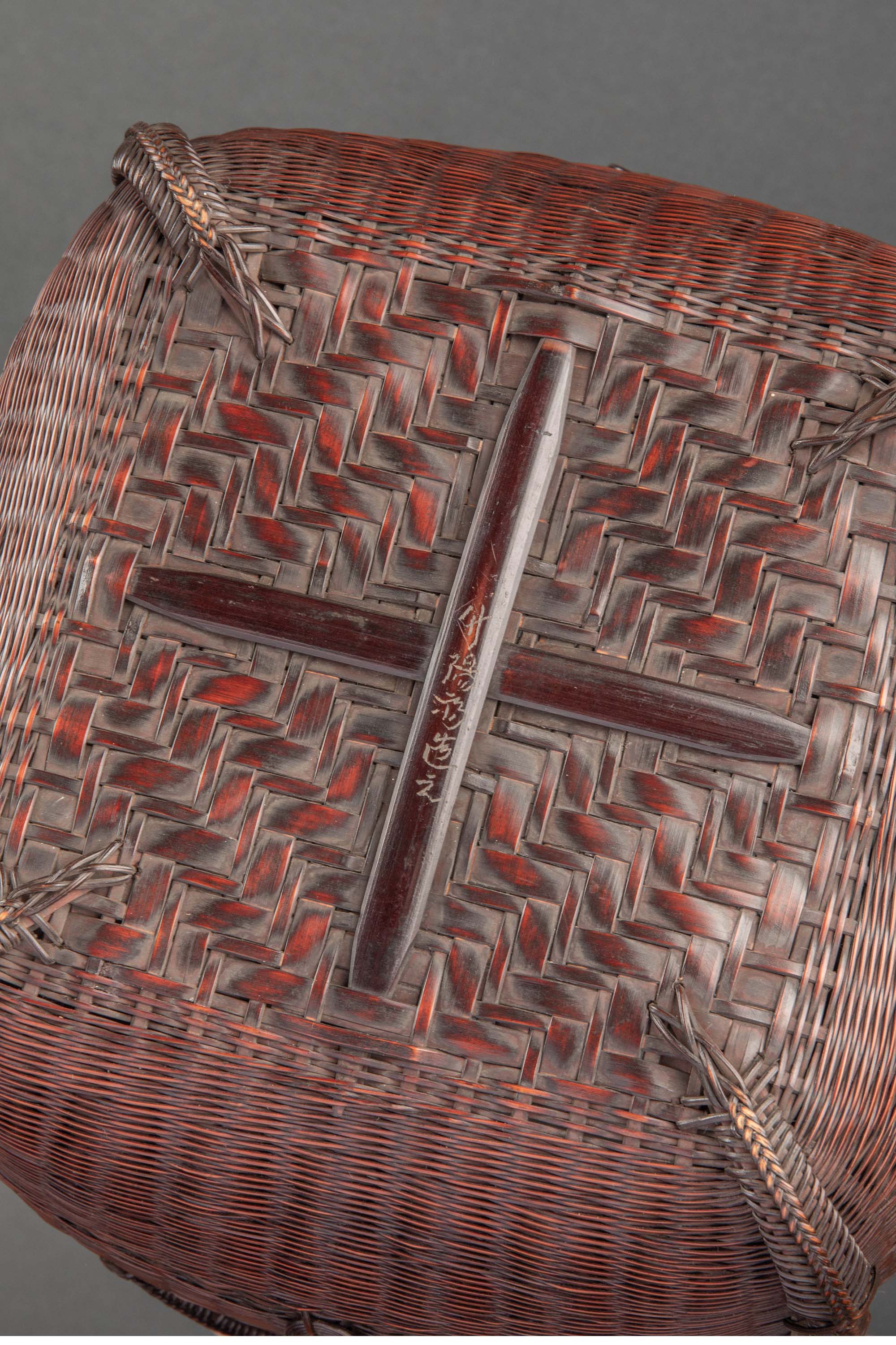 20世纪早期日本出品唐物式罐形竹编提梁花笼