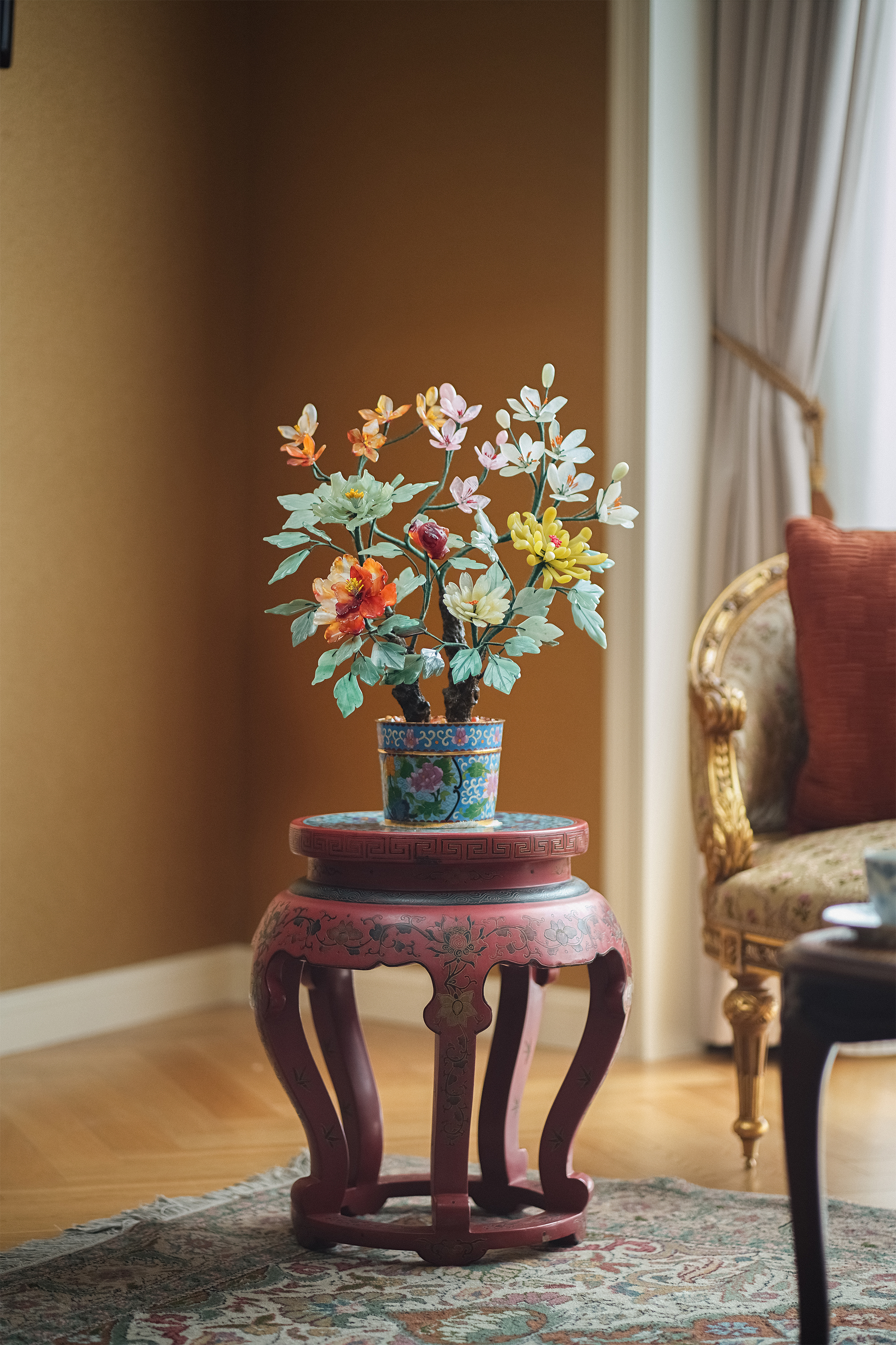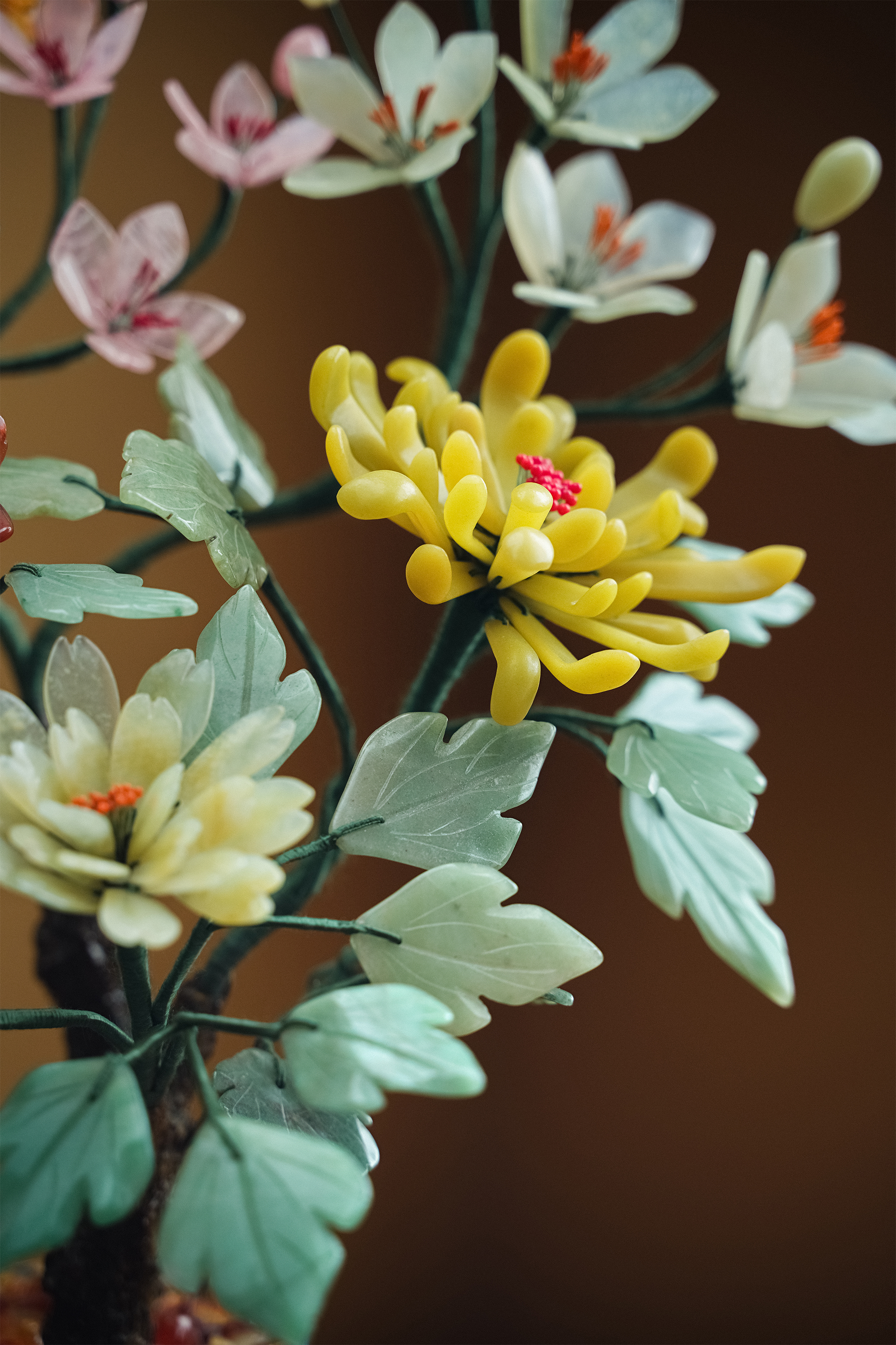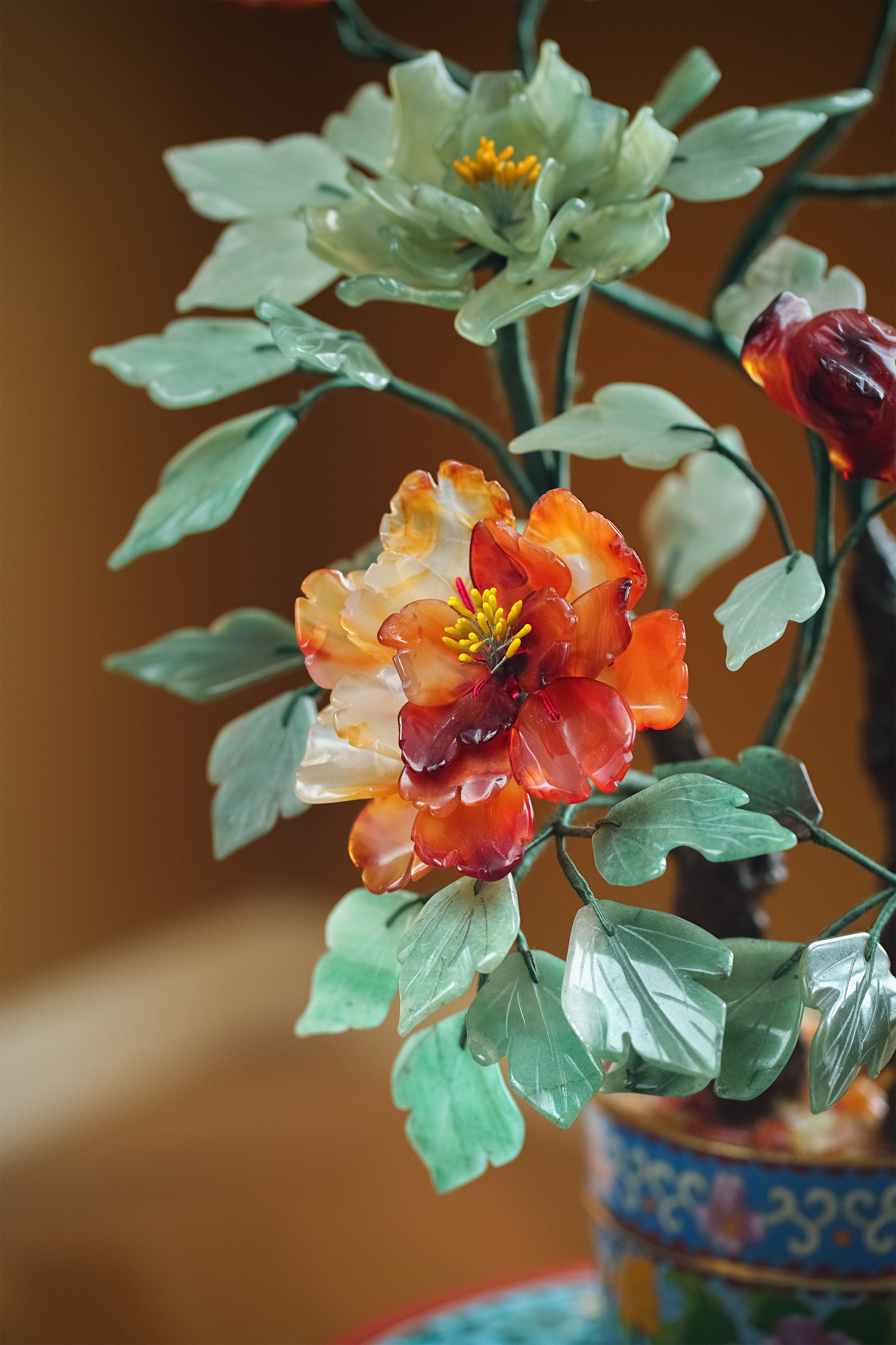 中国出品传统花卉纹景泰蓝盆装饰「寿寿满堂迎福贵」珍宝像生盆景摆件