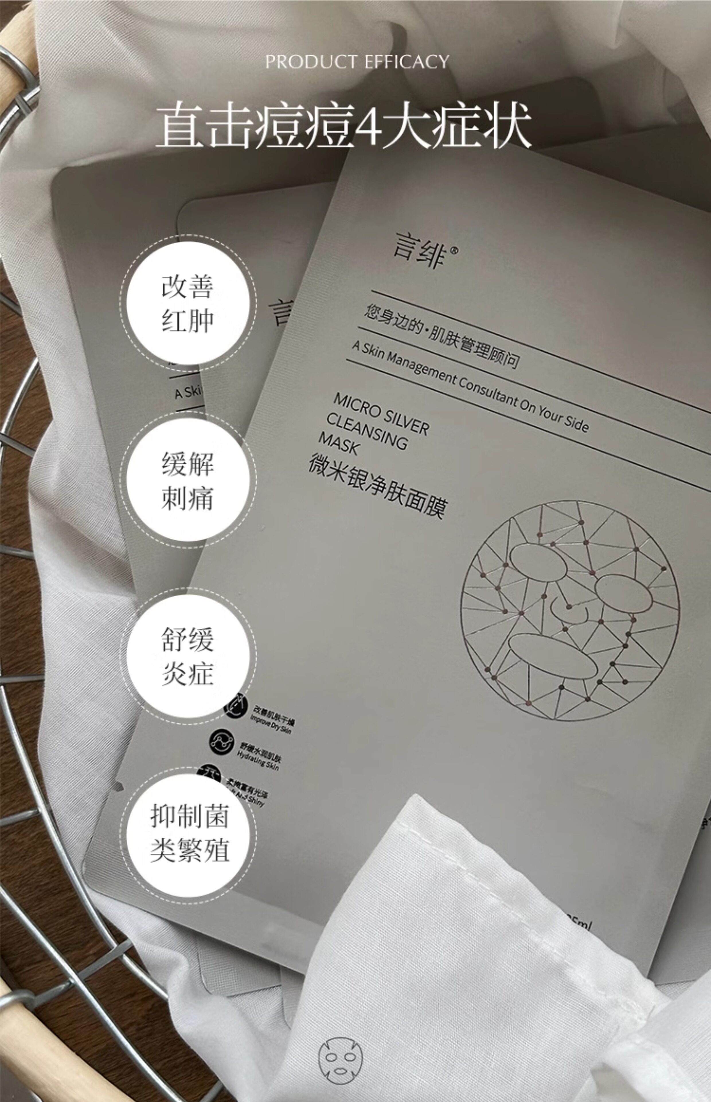 德国进口微米银面膜清痘舒缓补水玫瑰痤疮激素痘5贴/盒