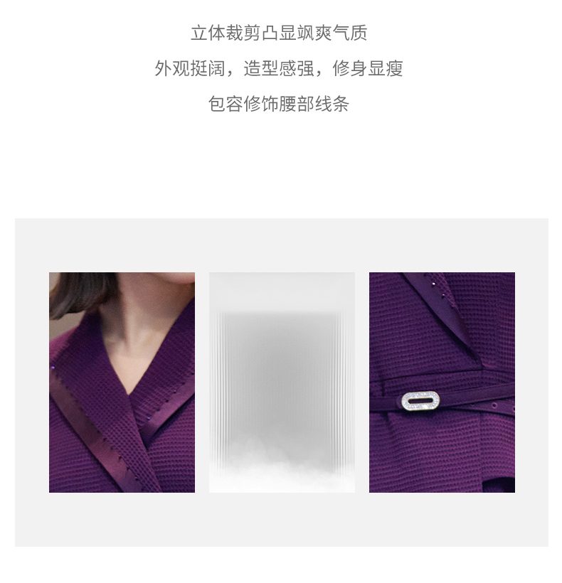 成熟、稳重、高贵典雅、大方得体 融合东方文化的含蓄和法国的浪漫 将创意的艺术性与消费需求相结合 为自信女性塑造高品质场合服装