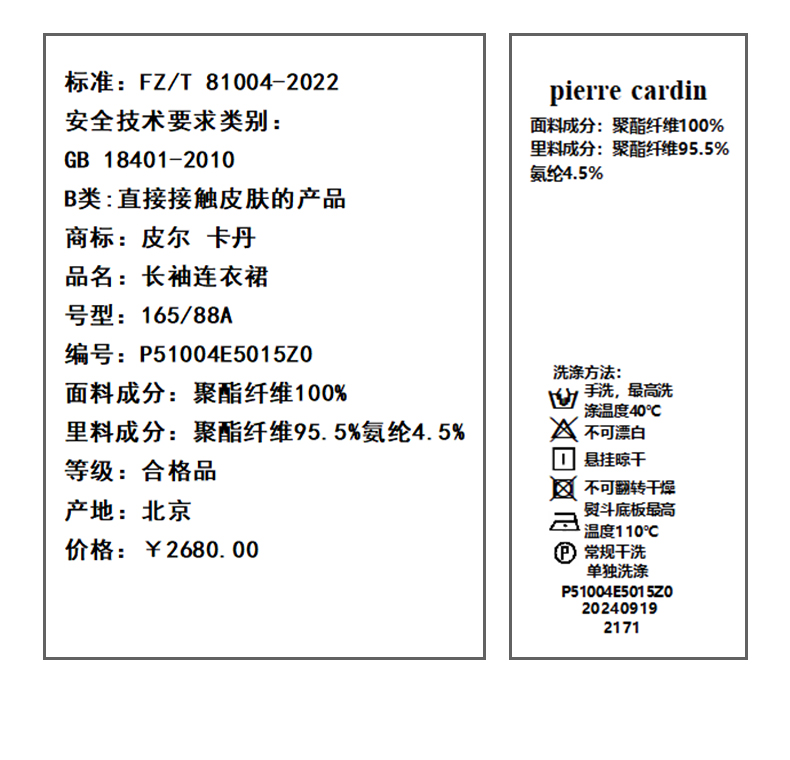 皮尔卡丹女装连衣裙P51004E5015Z0