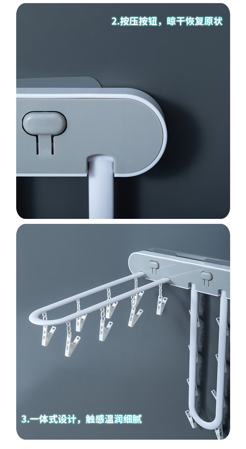 「24夹!折叠设计」多夹子折叠晾衣架卫生间阳台晒袜子架免打孔多功能壁挂内衣裤收纳整理