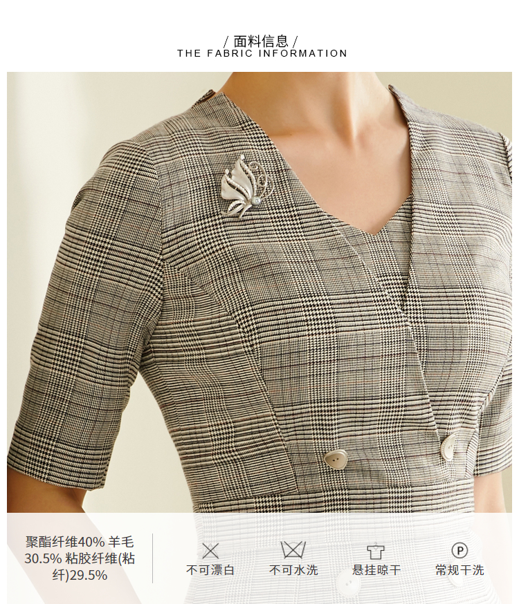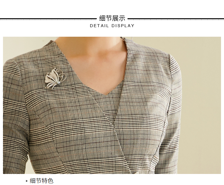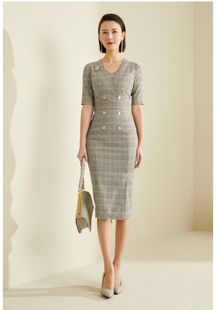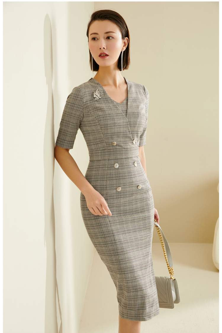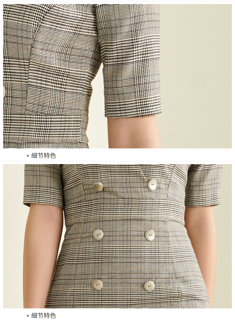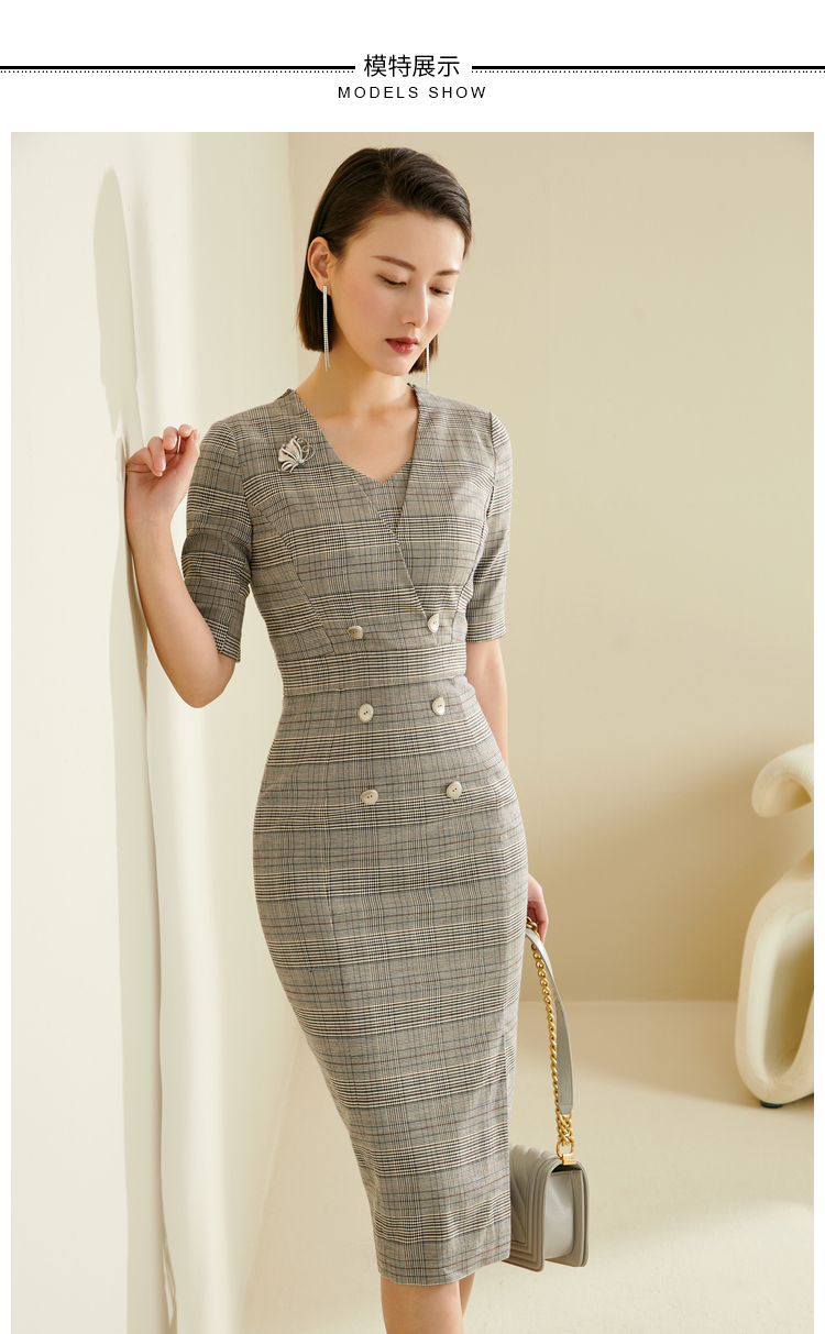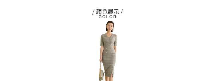 J9383820T1X5颈袖添香2024夏季新款OL显瘦修身包臀气质格子连衣裙女中长款J9383820T1X5
