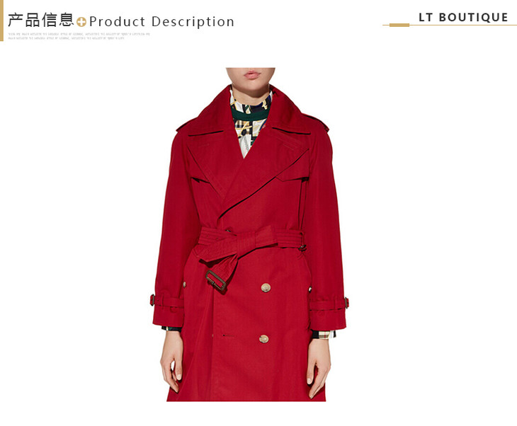 BURBERRY 博柏利 女装 女士风衣 印花衬里 轻薄嘎巴甸Trench风衣 红色 8002939 A1374