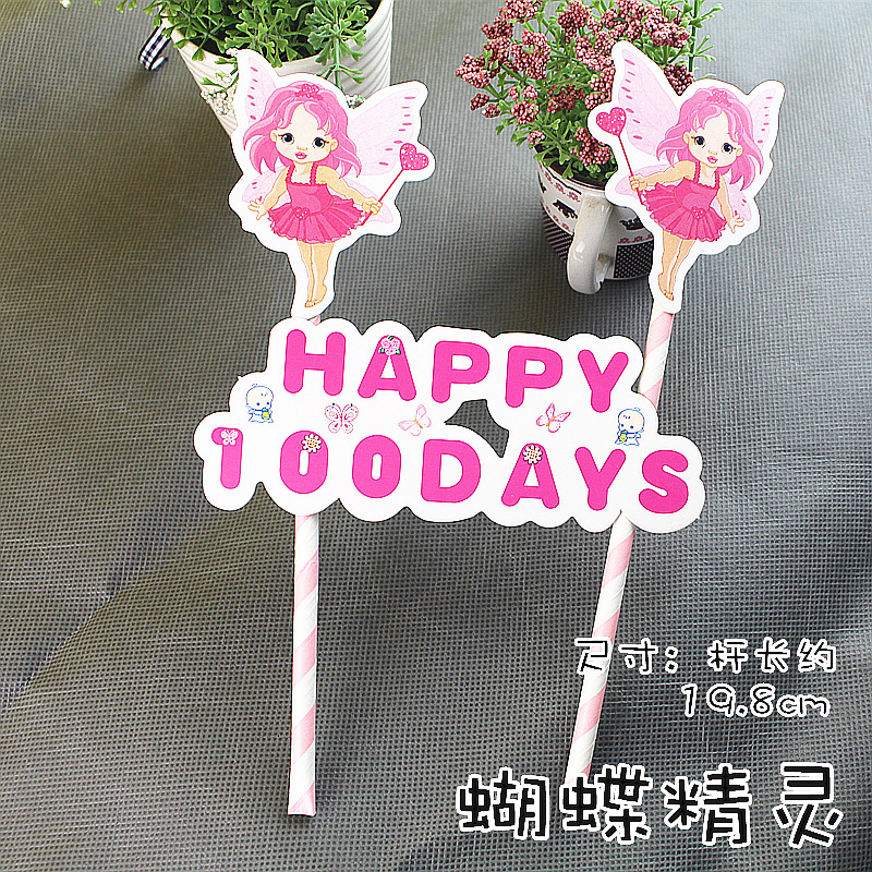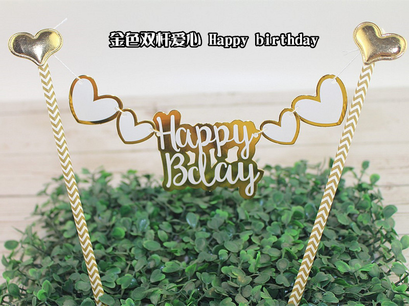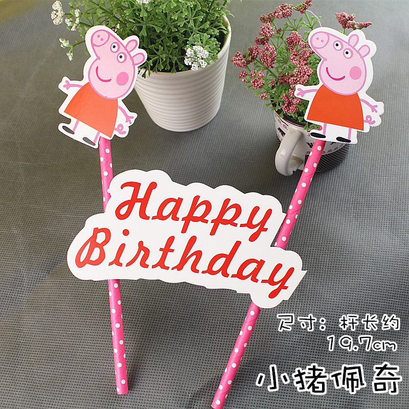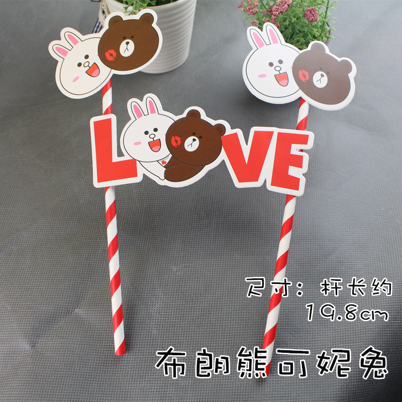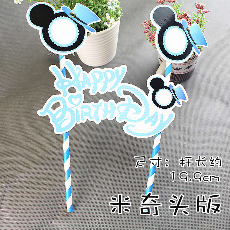 蛋糕双杆插旗 插牌 生日快乐插卡插排kt猫 米奇米妮 可妮兔布朗熊