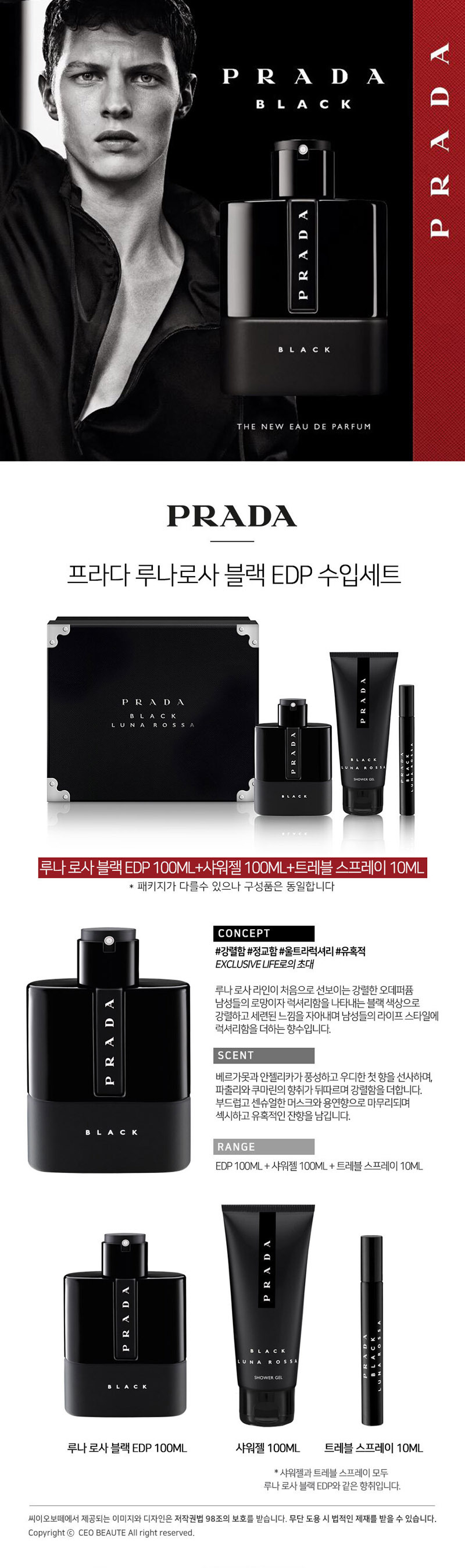 Prada Luna Rosa Black EDP 100ML +沐浴露100ML + 旅行喷雾10MLJPY带授权招加盟代理