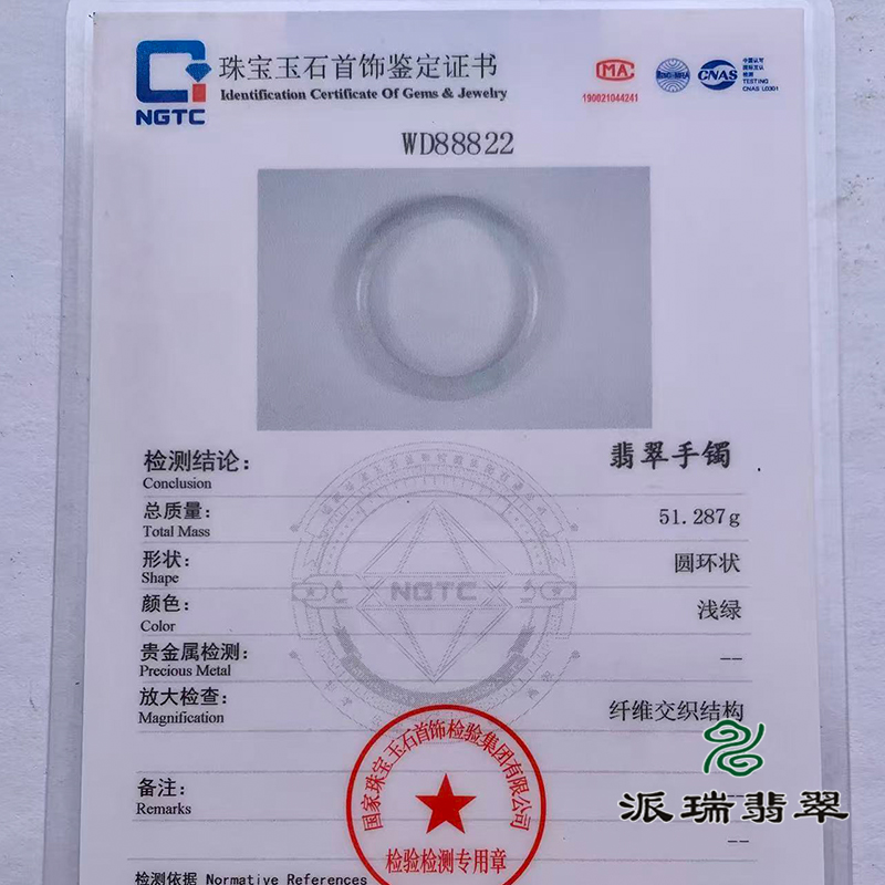 派瑞翡翠 翡翠手镯 糯种 浅绿色