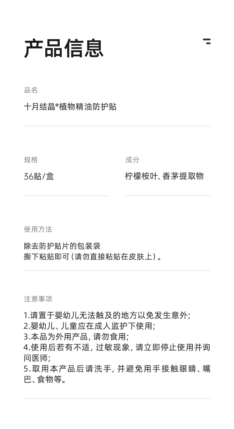 婴儿植物精油贴72片