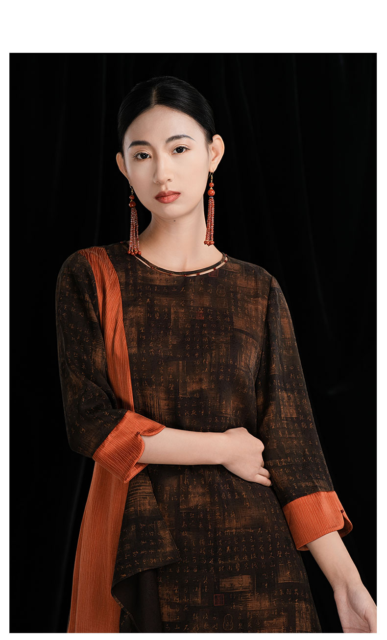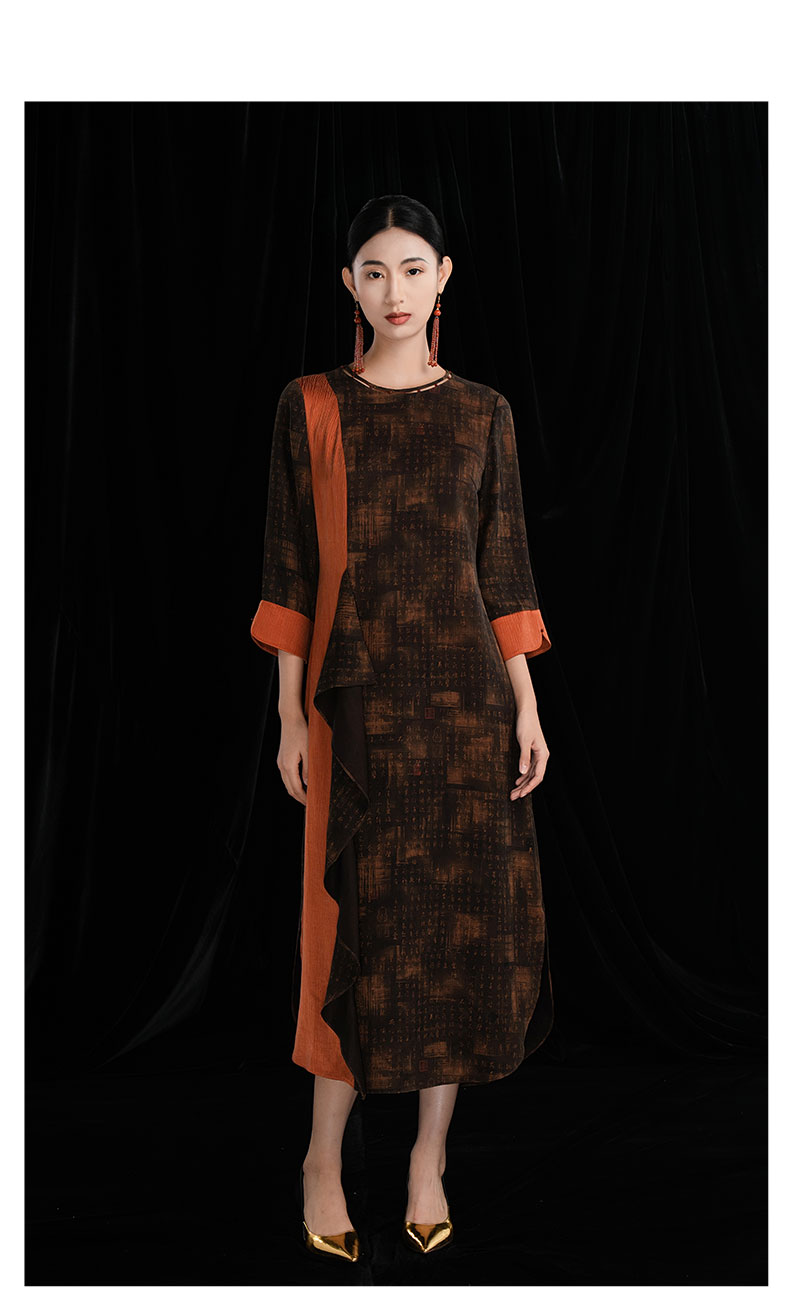 吉祥衣家新中式国风春夏新款高端气质显瘦修身女装落英昭昭连衣裙