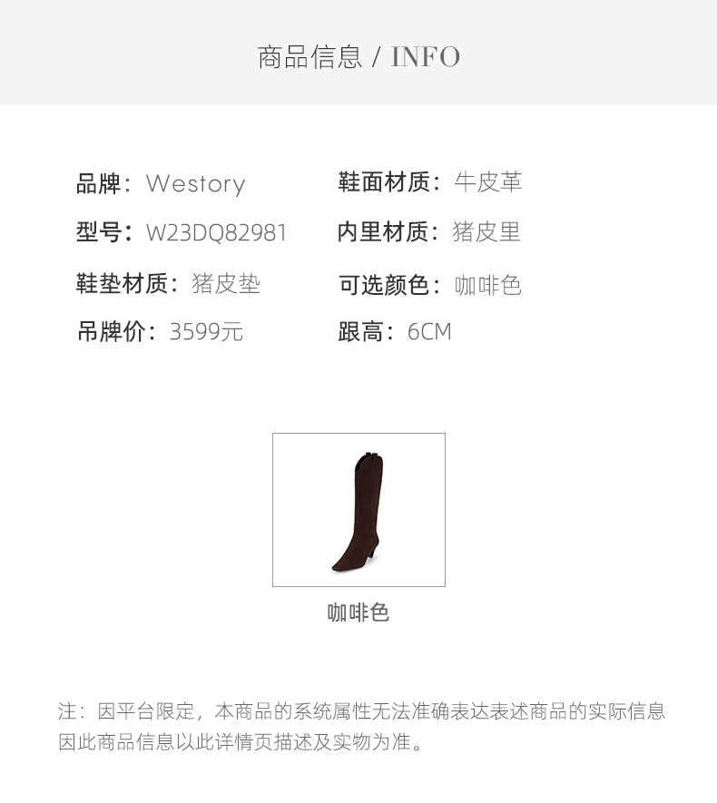 westory2023年秋季新品西部牛仔显瘦长靴西部靴高跟经典百搭W23DQ82981