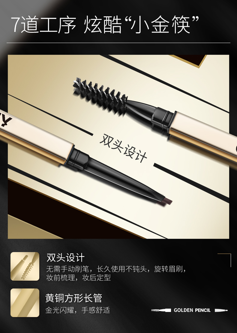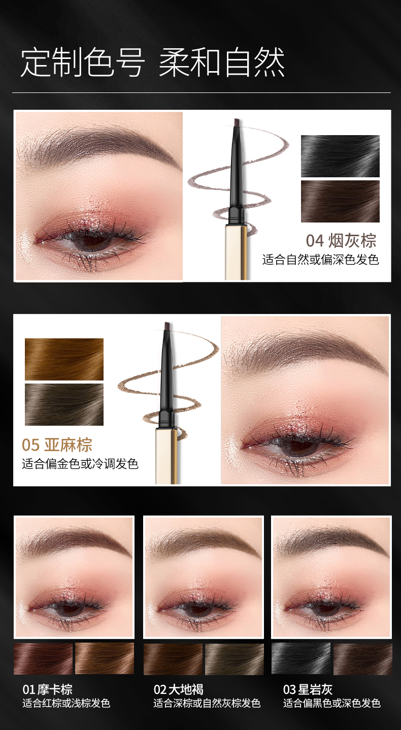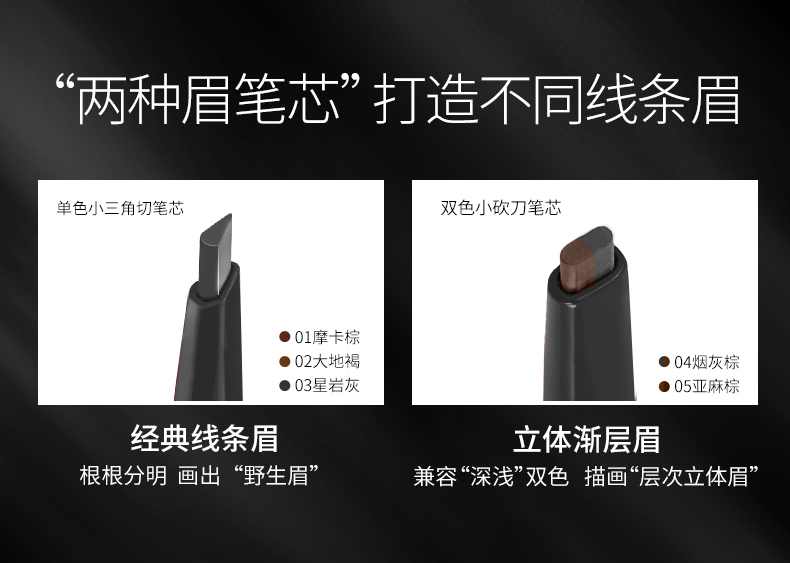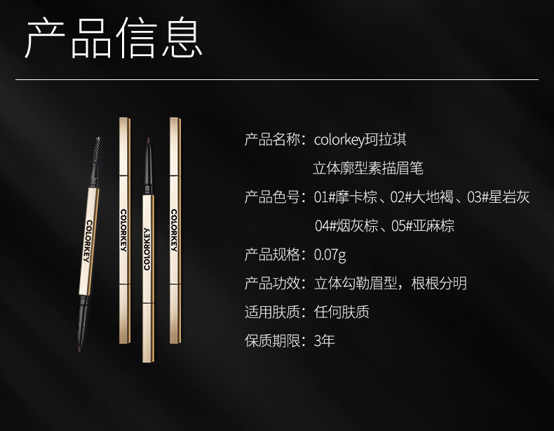 珂拉琪立体廓型素描眉笔 01摩卡棕 02大地褐 03星岩灰