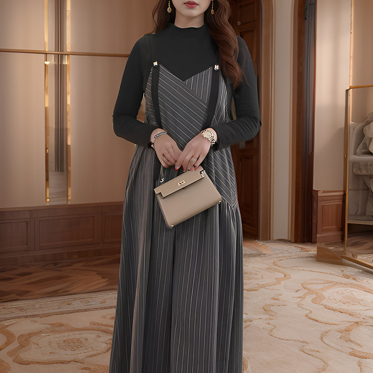 奢姿大码女装2024秋季减龄条纹吊带设计连体裤胖妹妹时尚简约裤9943553589