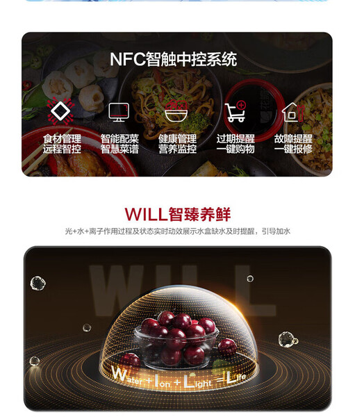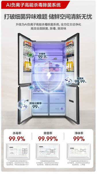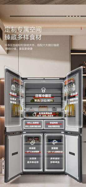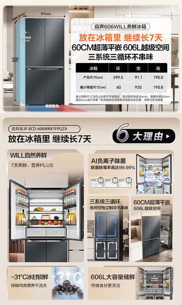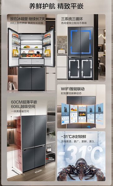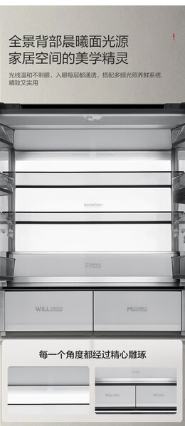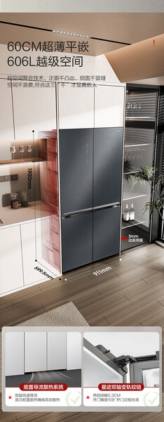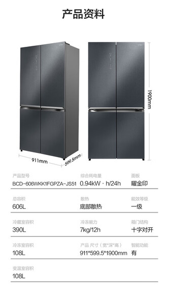容声 冰箱 BCD-606WKK1FPGZA 606升 十字四门 嵌入式 风冷 变频 一级能效 底部散热 曜金印