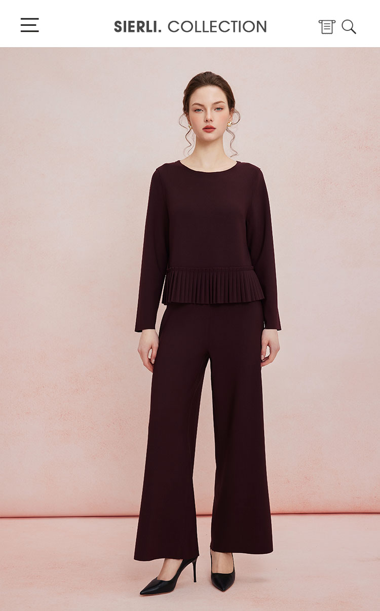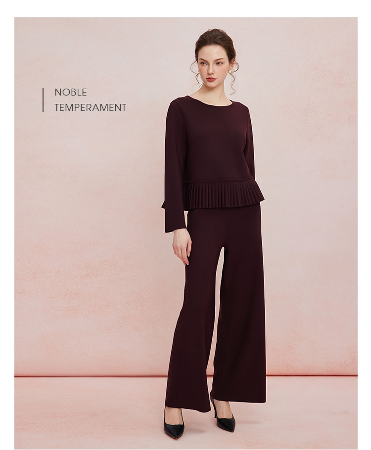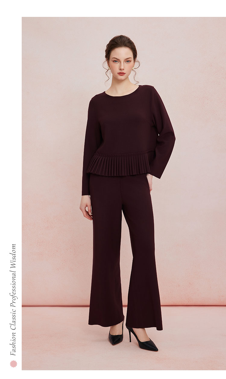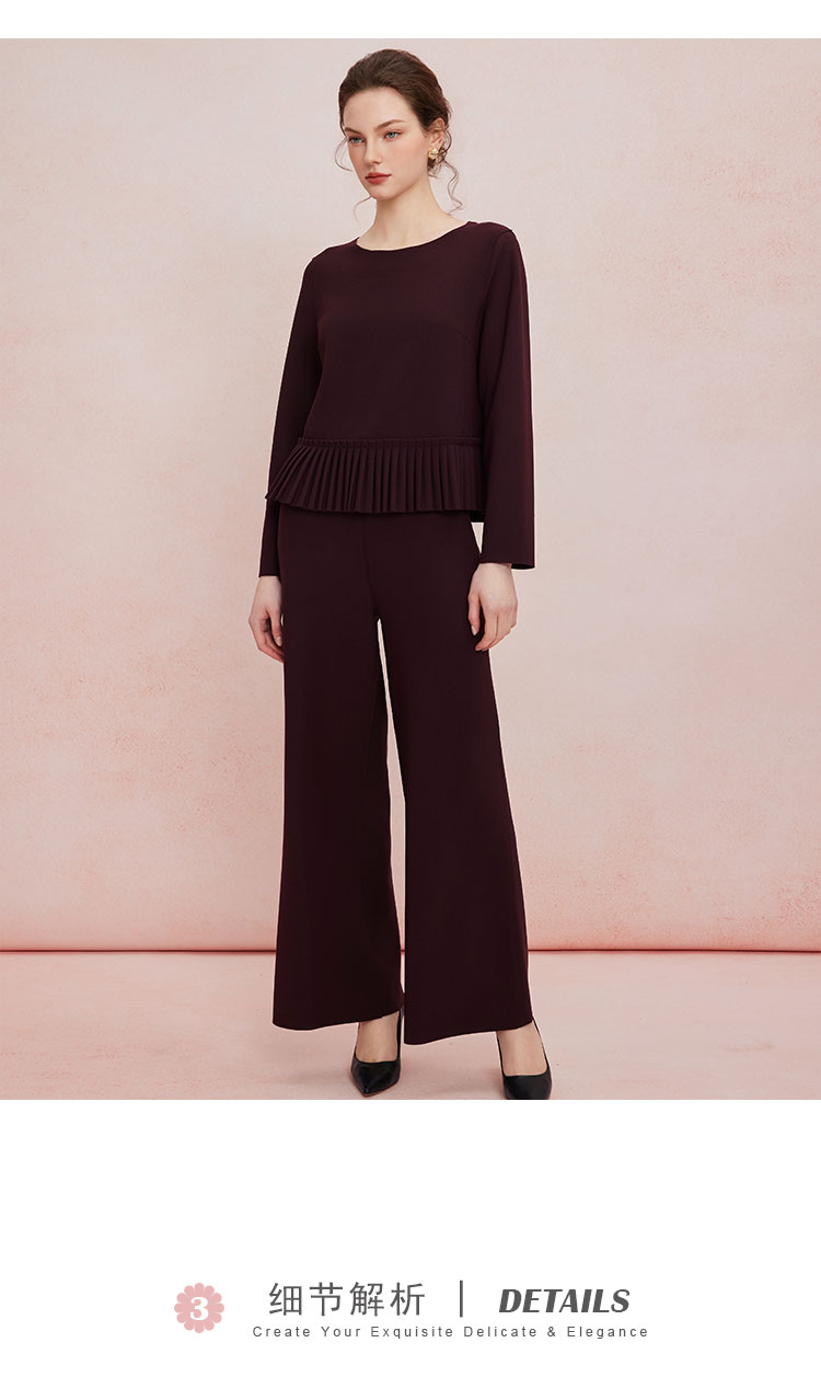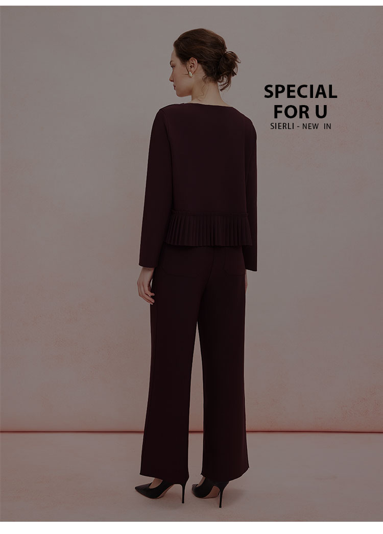 QF109斯尔丽2025新款四面弹舒适面料颗粒视觉宽松舒适上衣配直筒裤套装